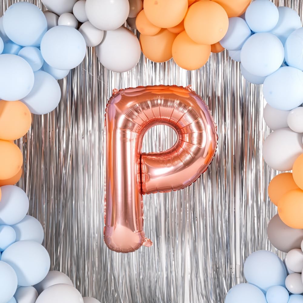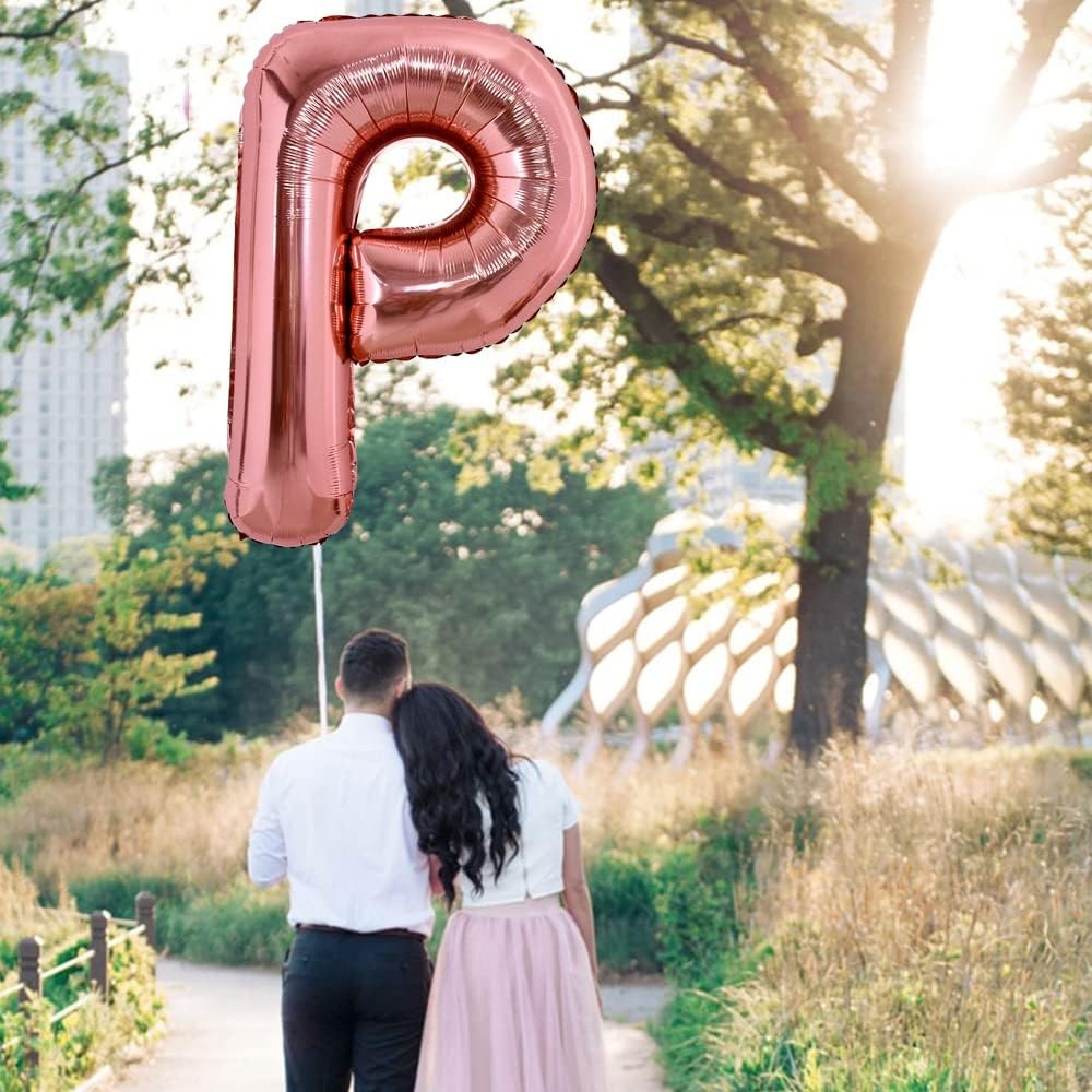 Balon Folie Metalizata Litera P, Embo, 80 cm, Umflati cu Heliu sau Aer, Ambalaj Individual, Pai inclus, Rose Gold