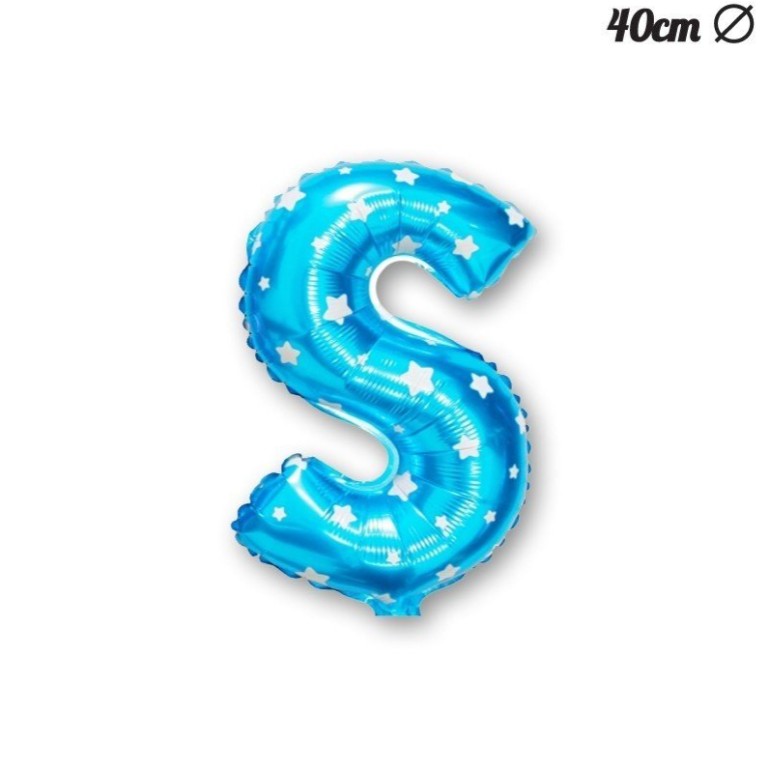 Balon Folie Metalizata Litera S, Embo, 40 cm, Cu Imprimeu Stelute, Umflati cu Heliu sau Aer, Ambalaj Individual, Pai inclus, Albastru