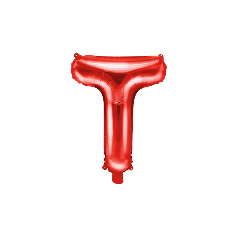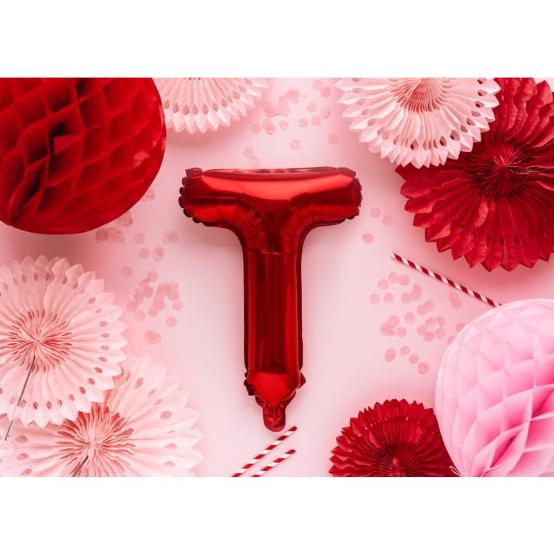 Balon Folie Metalizata Litera T, Embo, 40 cm, Umflati cu Heliu sau Aer, Ambalaj Individual, Pai inclus, Rosu