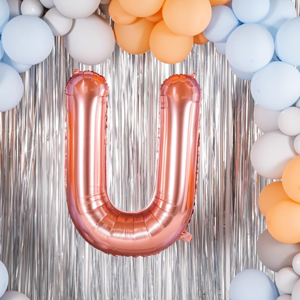 Balon Folie Metalizata Litera U, Embo, 100 cm, Umflati cu Heliu sau Aer, Ambalaj Individual, Pai inclus, Rose Gold