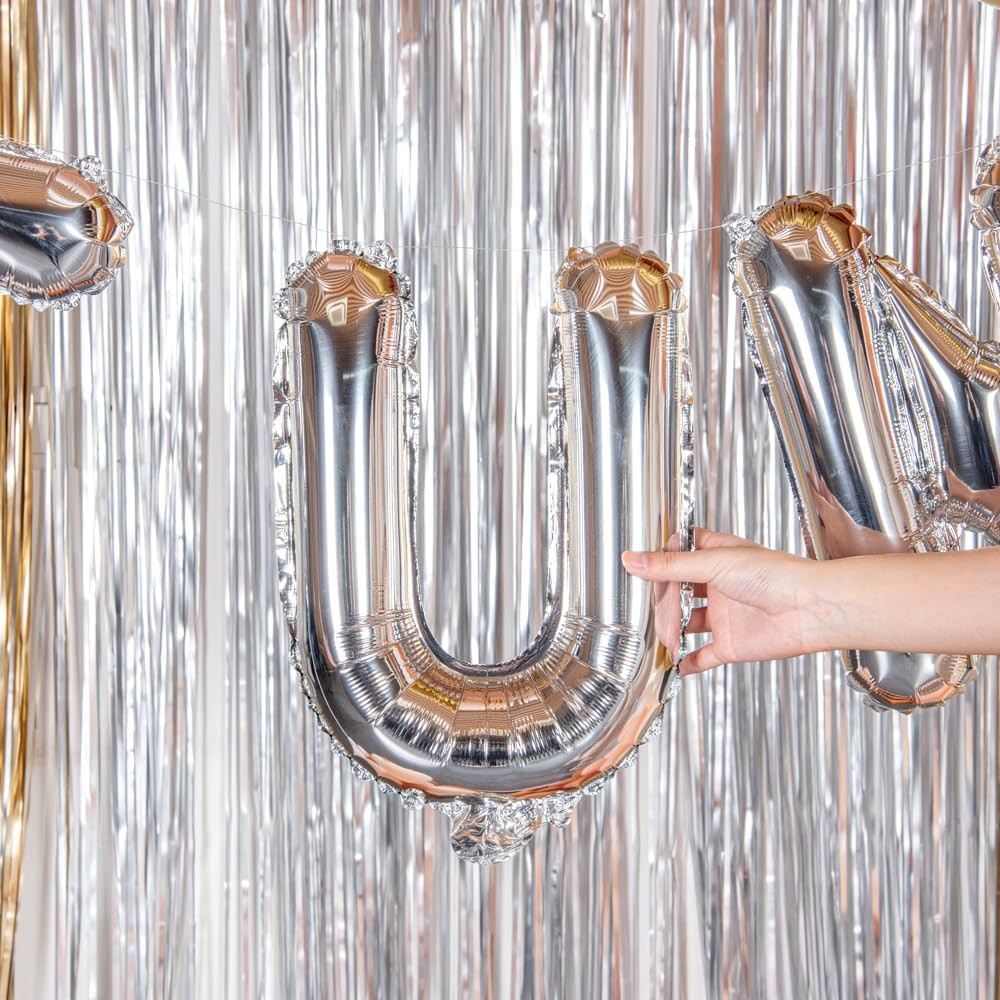 Balon Folie Metalizata Litera U, Embo, 40 cm, Umflati cu Heliu sau Aer, Ambalaj Individual, Pai inclus, Argintiu
