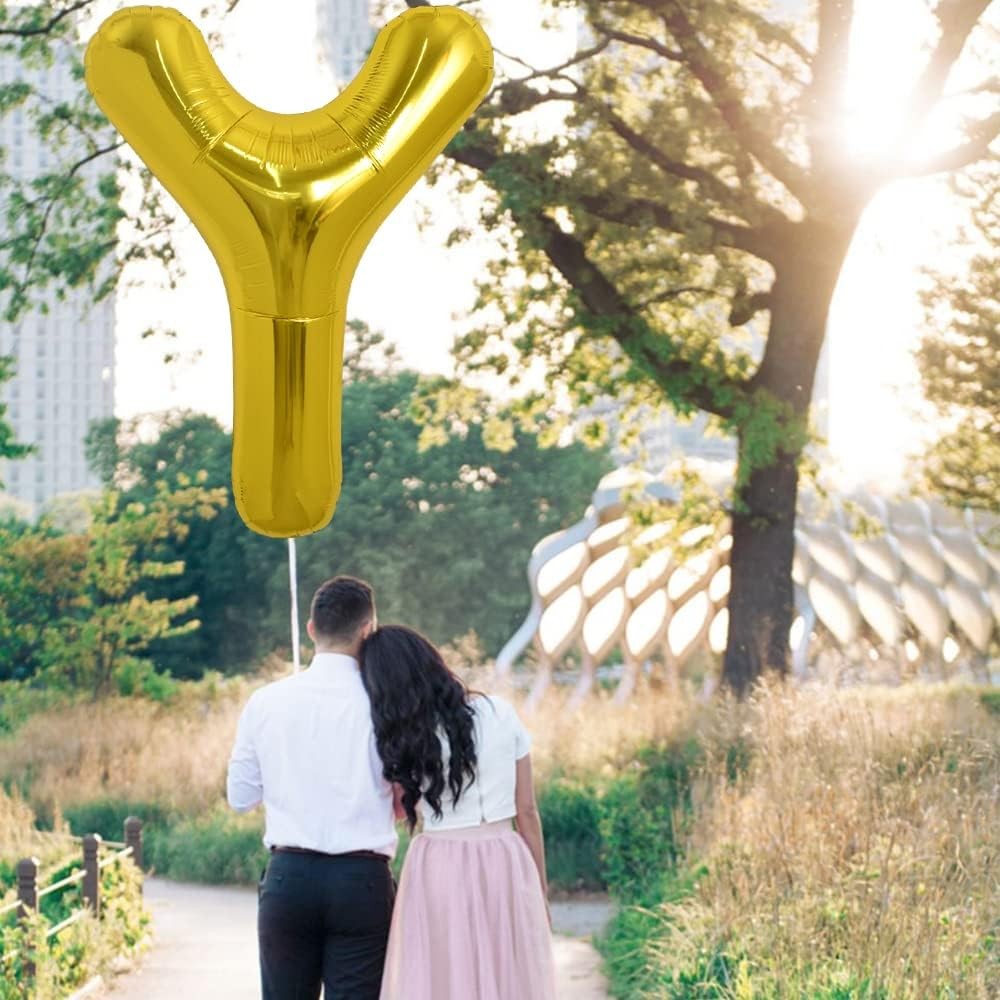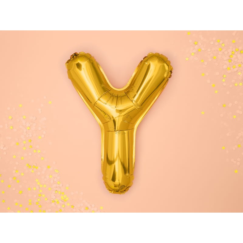 Balon Folie Metalizata Litera Y, Embo, 80 cm, Umflati cu Heliu sau Aer, Ambalaj Individual, Pai inclus, Auriu