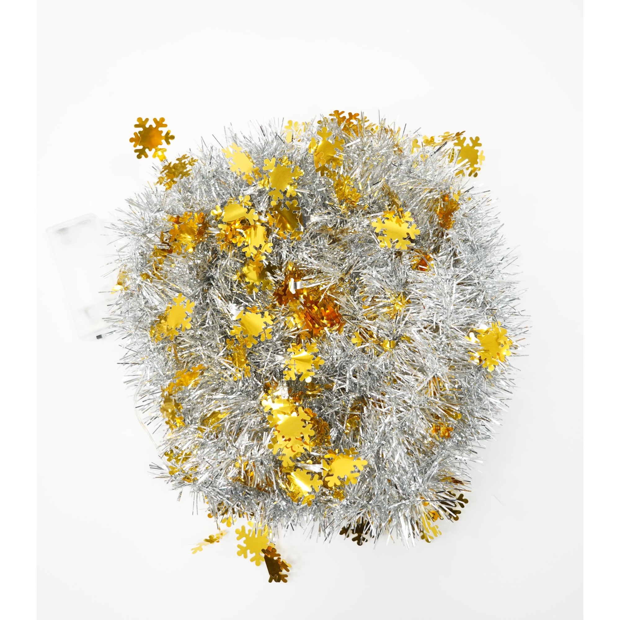 Beteala Craciun cu LED, Aurie, model cu fulgi de nea, 2 m x 5 cm, PVC, Sir, Artificiala, Embo