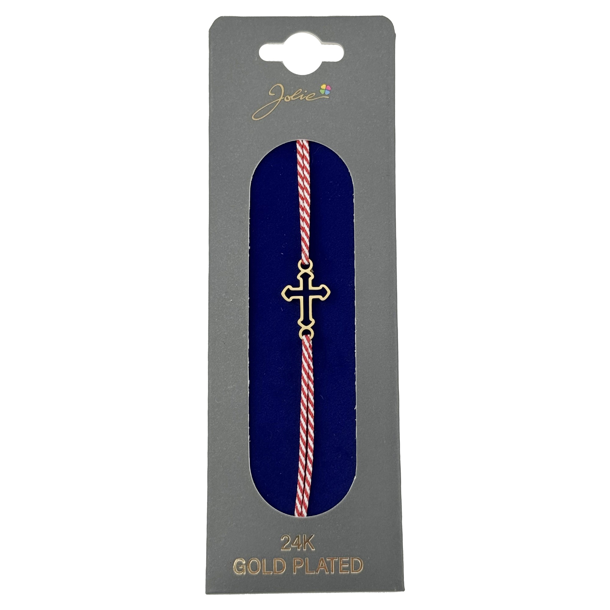 Bratara Placata cu Aur 24k, Snur Alb Rosu, Model 3