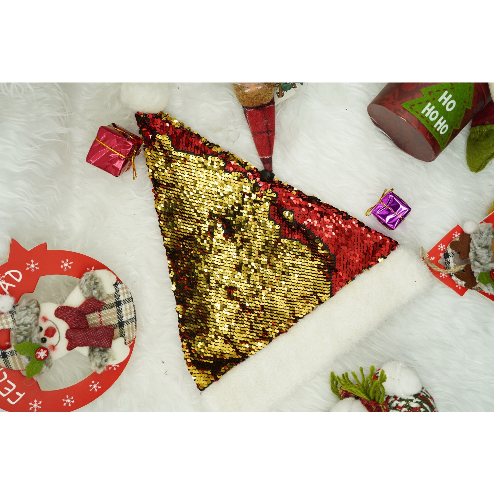 Caciulita de Mos Craciun, Embo,cu strasuri, in 2 culori, rosie – aurie, marime universala, material textil