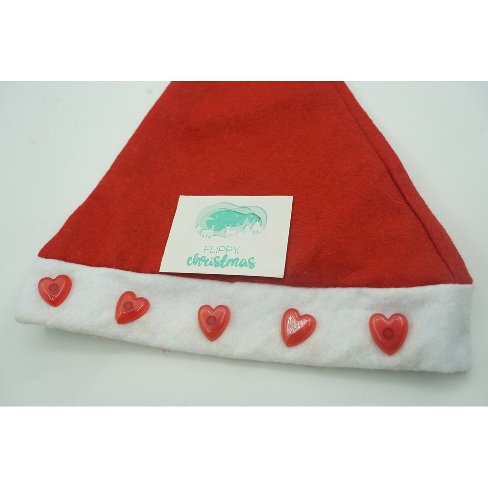 Caciulita de Mos Craciun,Embo, cu inimi ,led si muzica, rosie, marime universala, poliester