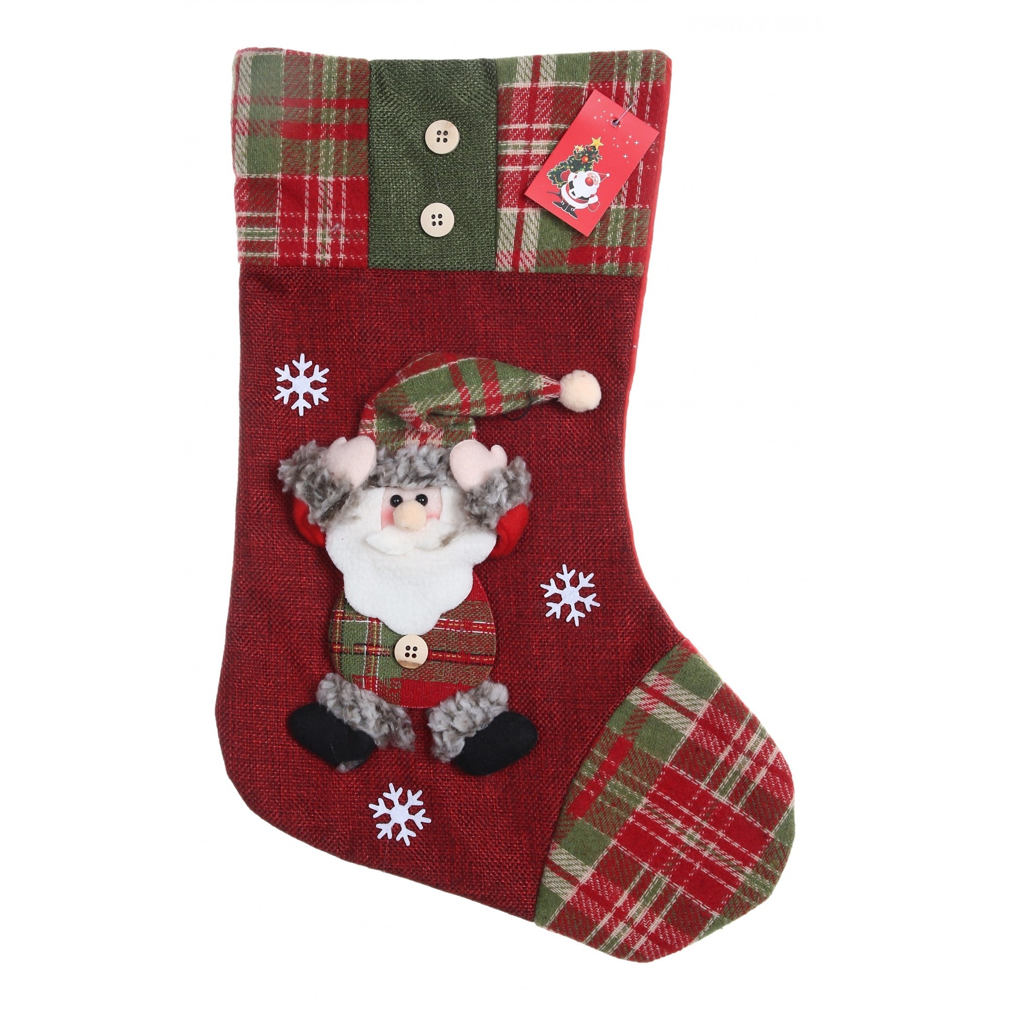 Ciorap Cadouri,Embo,cu model Mos Craciun,rosu, marimea 20×30 cm, textil, interior
