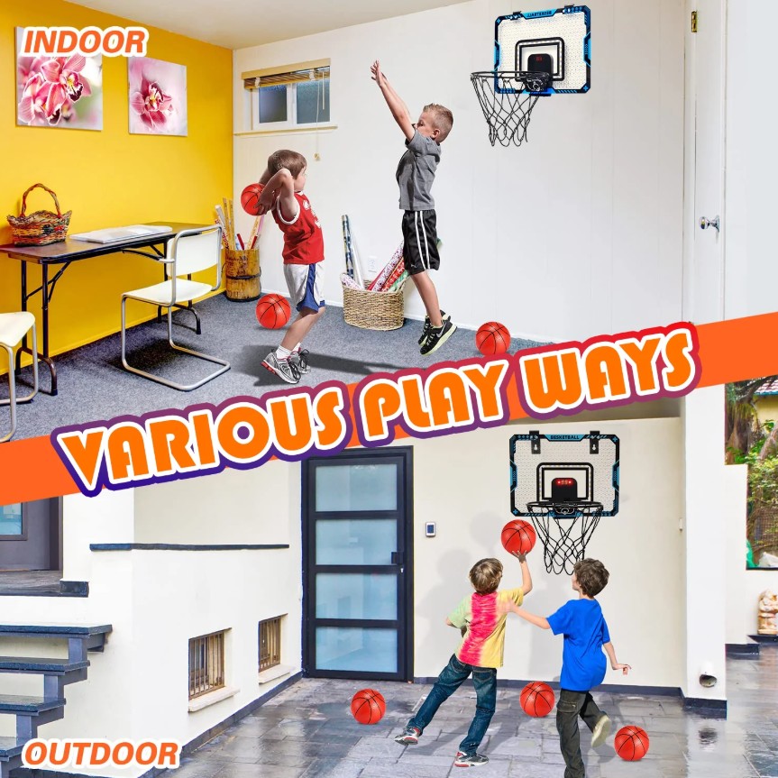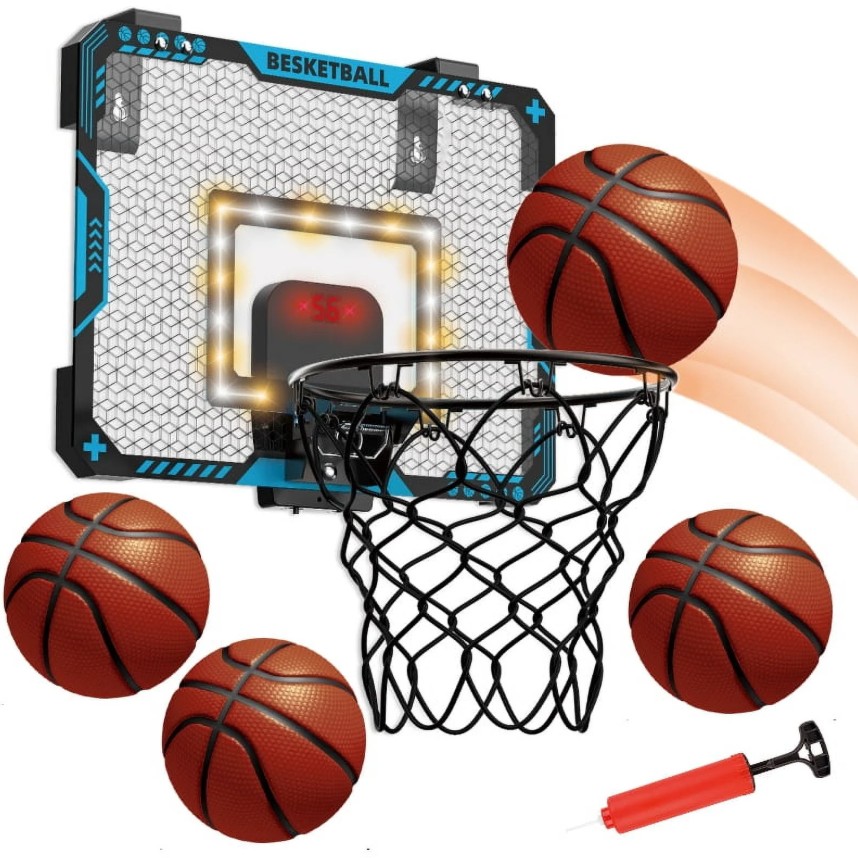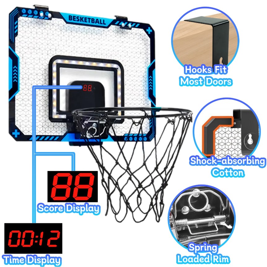 Descriere Produs: Cos de Baschet pentru Copii Embo cu Tabou de Bord Electronic, Minge și Pompa – 2 Moduri, Interior/Exterior