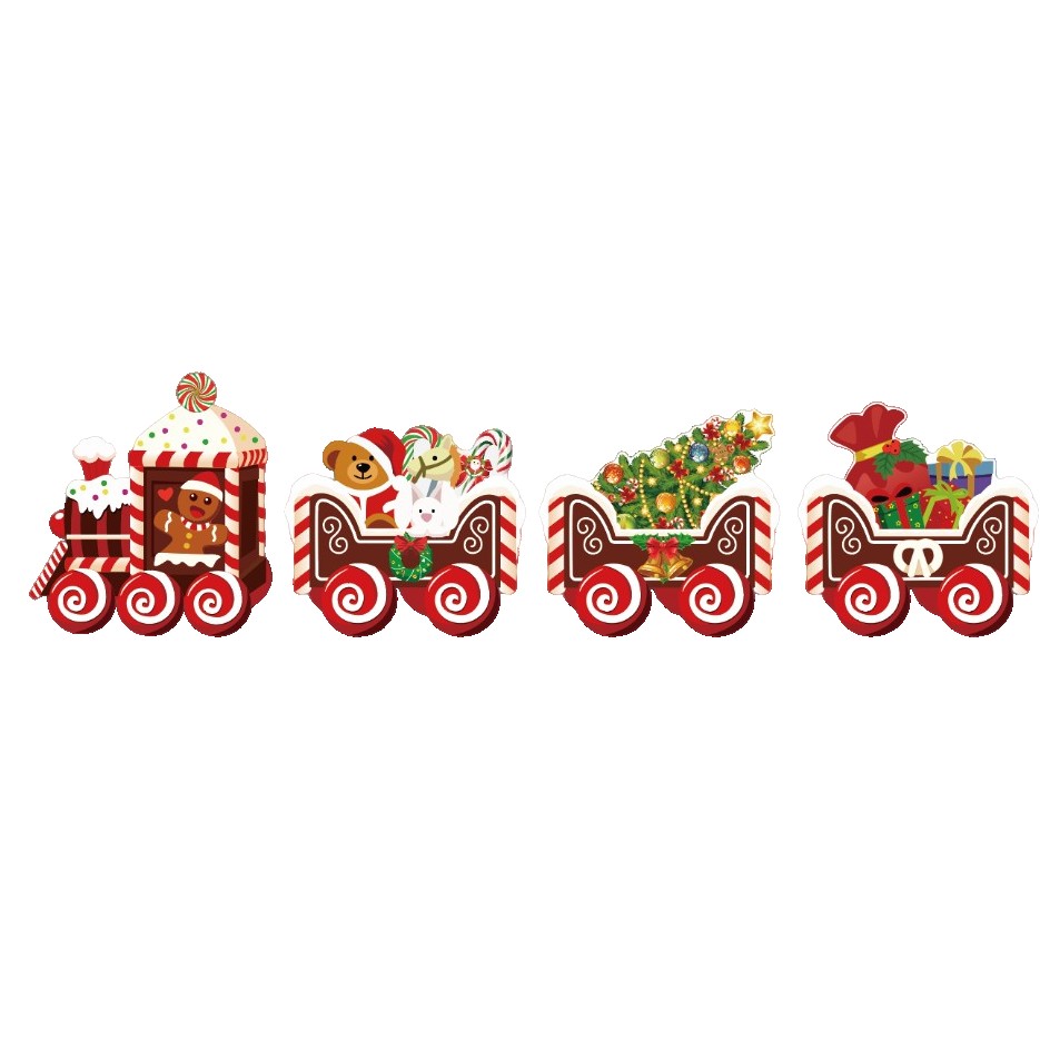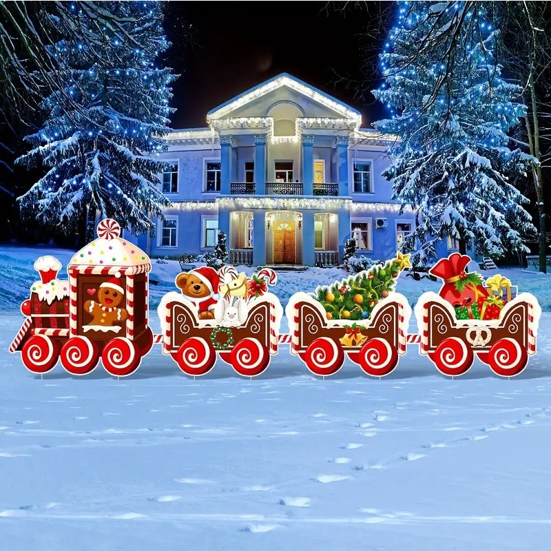 Decoratiune de Craciun, Embo, pentru Gradina, Tip Trenulet, 4 Figurine + Bete de Infipt in Pamant, din Plastic, Impermeabil, Model Tren cu Omul Briosa, Multicolor