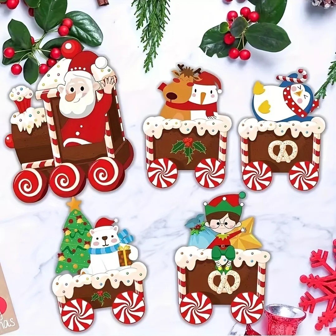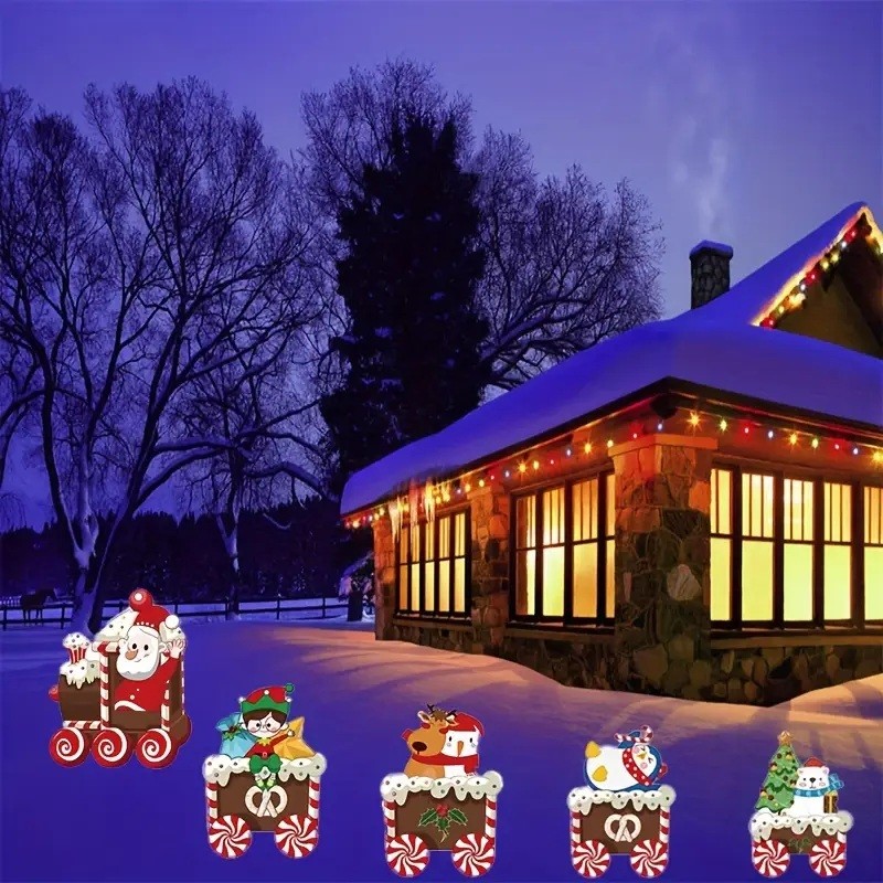 Decoratiune de Craciun, Embo, pentru Gradina, Tip Trenulet, 5 Figurine + Bete de Infipt in Pamant, din Plastic, Impermeabil, Model Tren Christmas, Multicolor