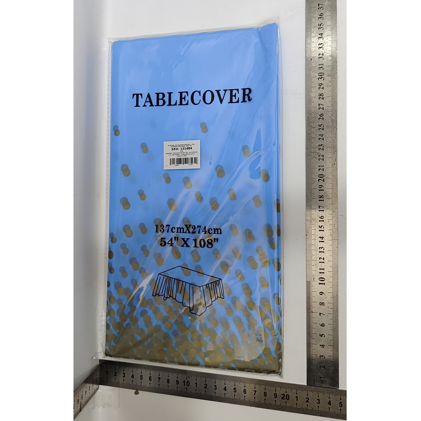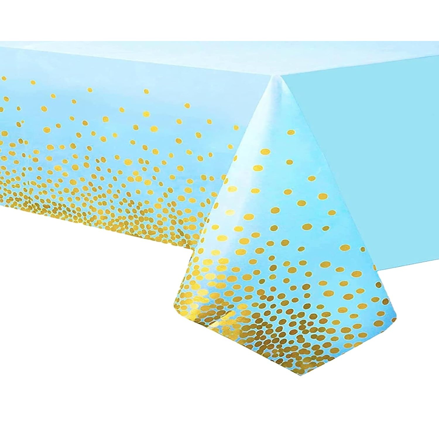 Fata de Masa, Embo, din PEVA, Imprimeu Buline Aurii, 137 x 274 cm, Impermeabila, Fara Pete, Curatare Rapida, Albastru