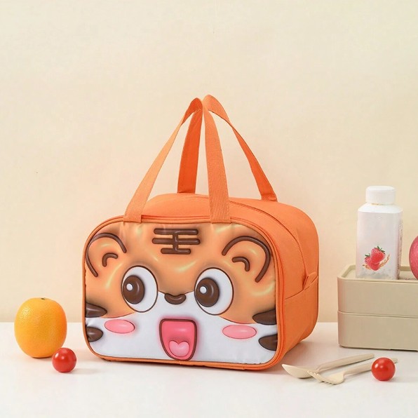 Geantă Frigorifică, Embo, cu Desene Animat 3D, Portabilă pentru Copii, de Prânz, din Pânză Oxford, 27.5x18x20 cm, Model Tigru, Portocaliu