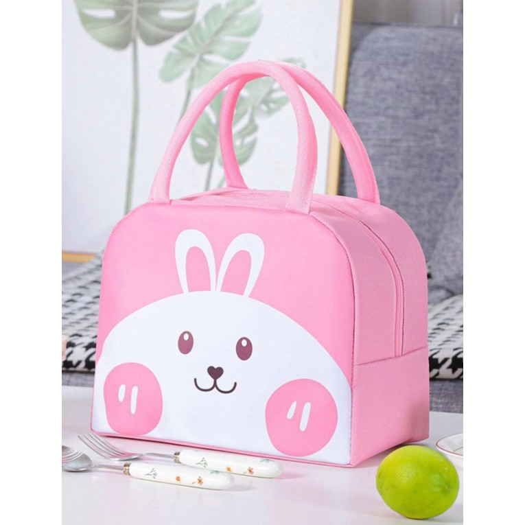 Geantă Frigorifică, Embo, cu Desene Animat, Portabilă pentru Copii, de Prânz, din Pânză Oxford, 22x14x19 cm, Model Iepuras, Roz