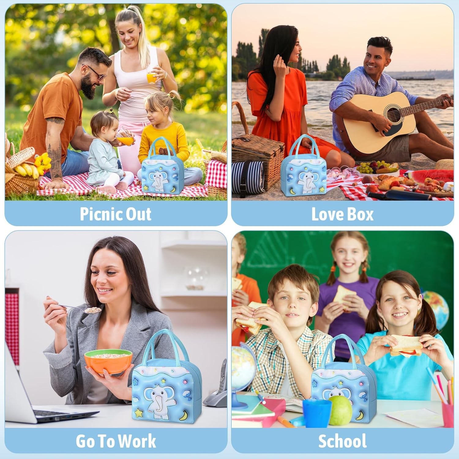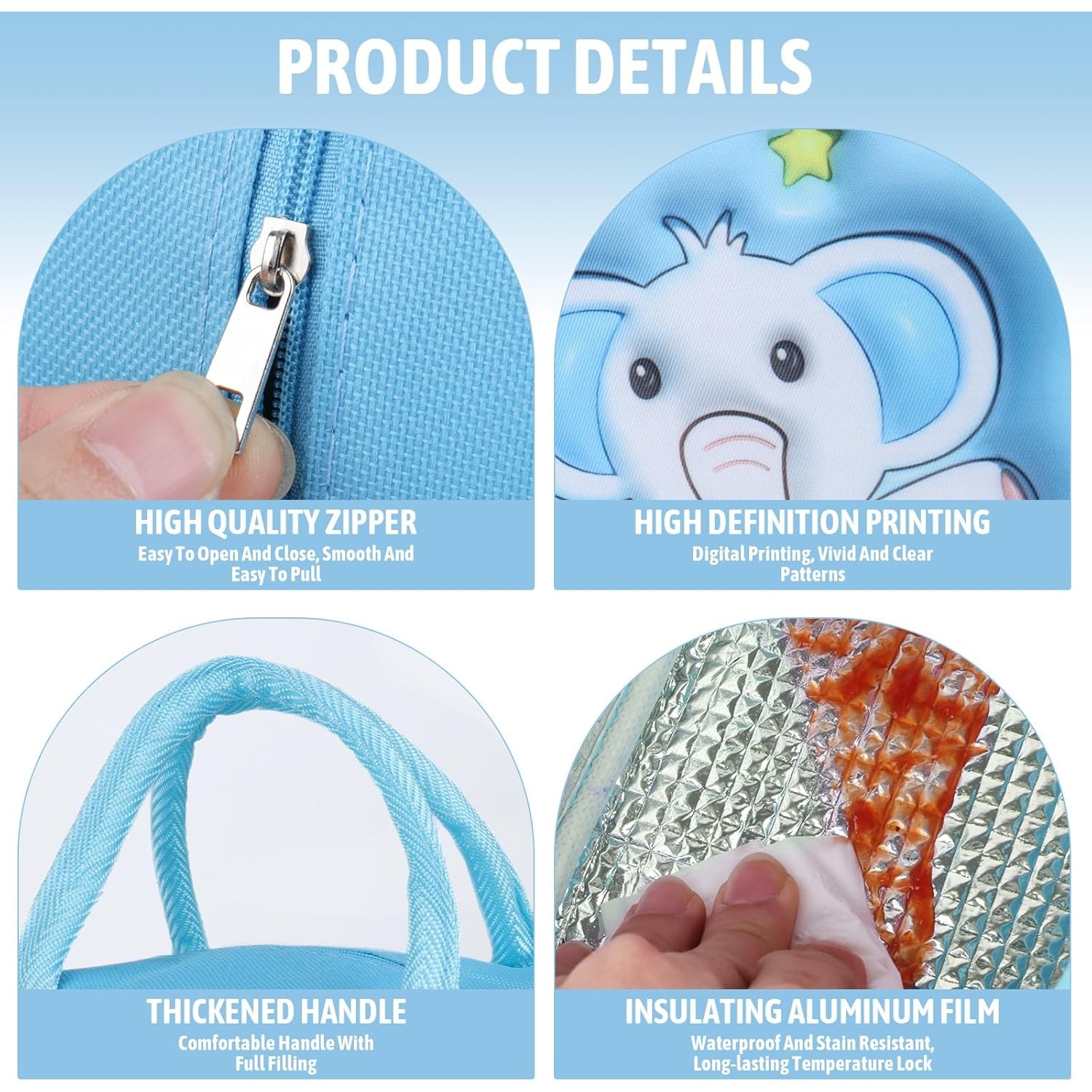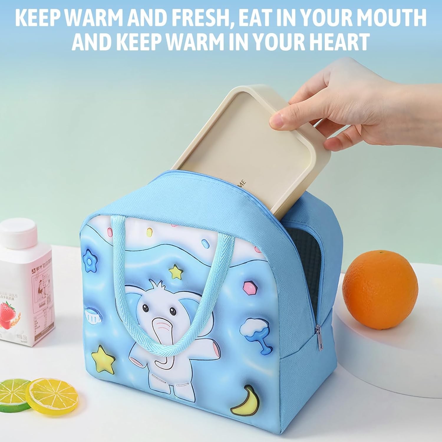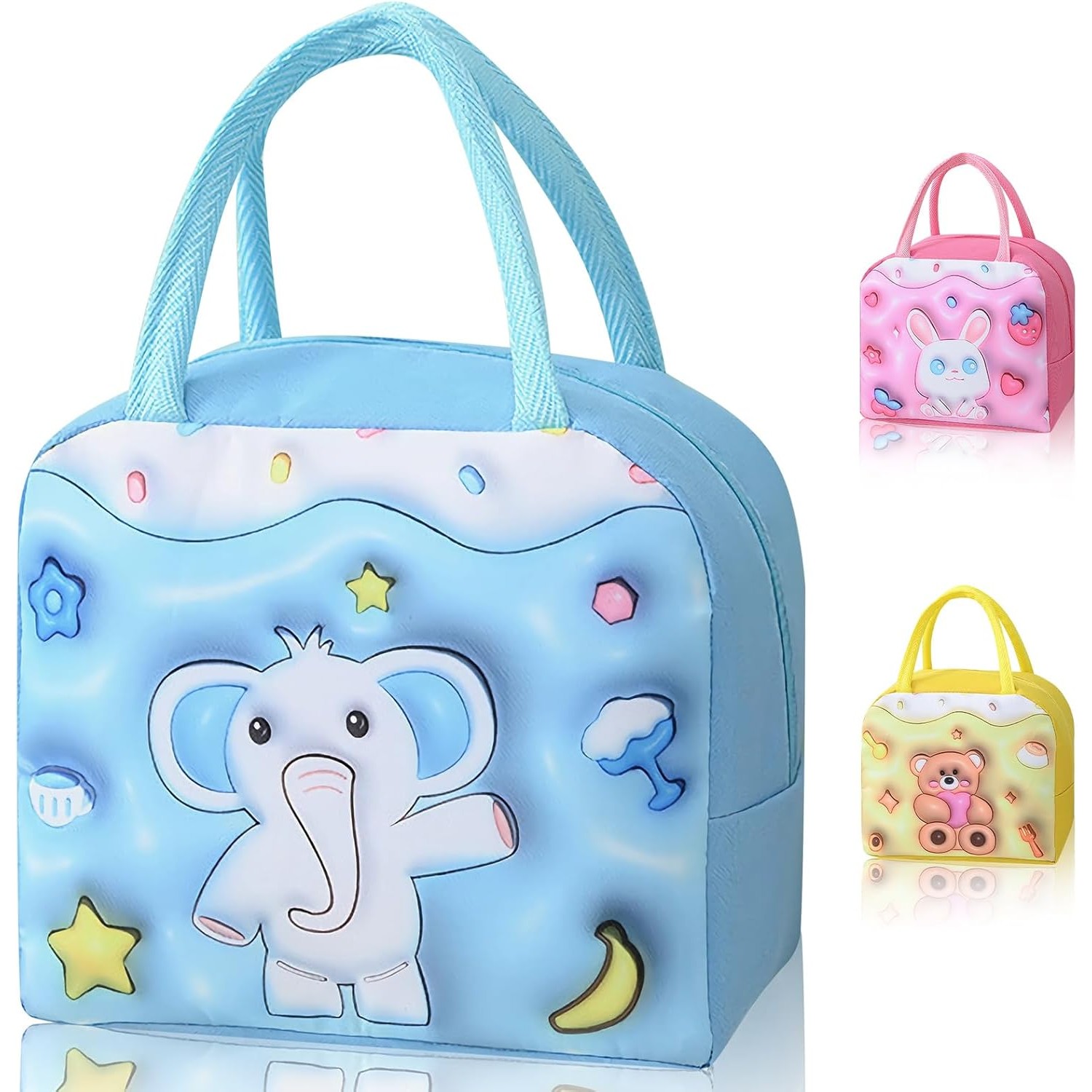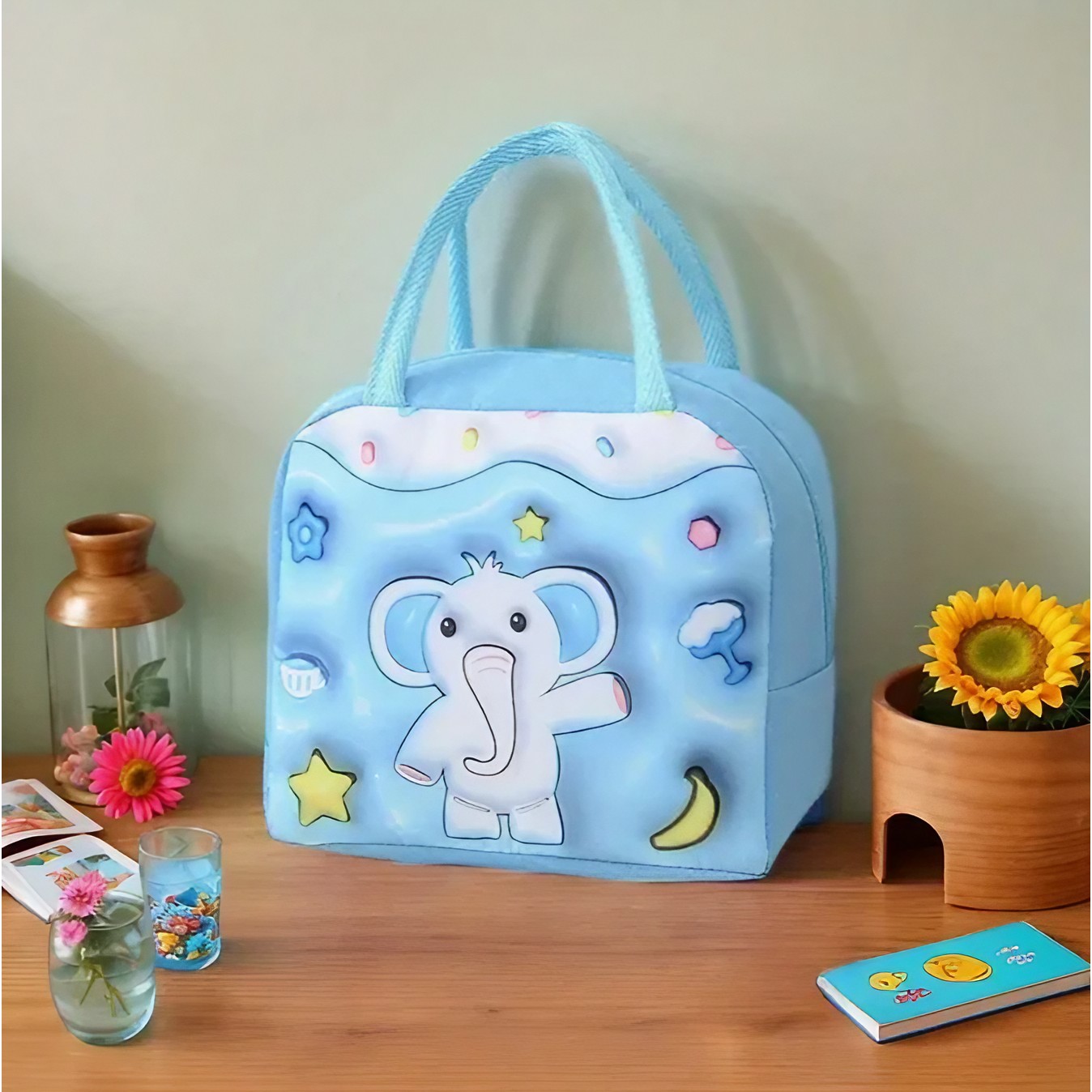 Geantă Frigorifică, Embo, cu Desene Animate 3D, Portabilă pentru Copii, de Prânz, din Pânză Oxford, 23x13x19 cm, Model Elefantel, Albastru