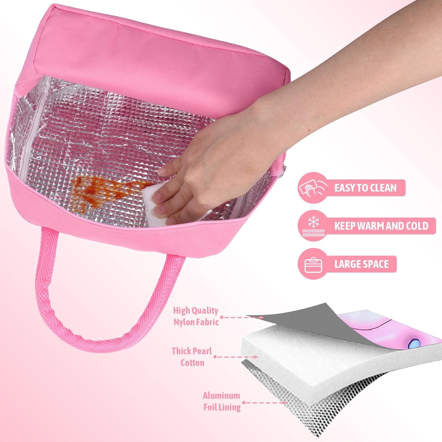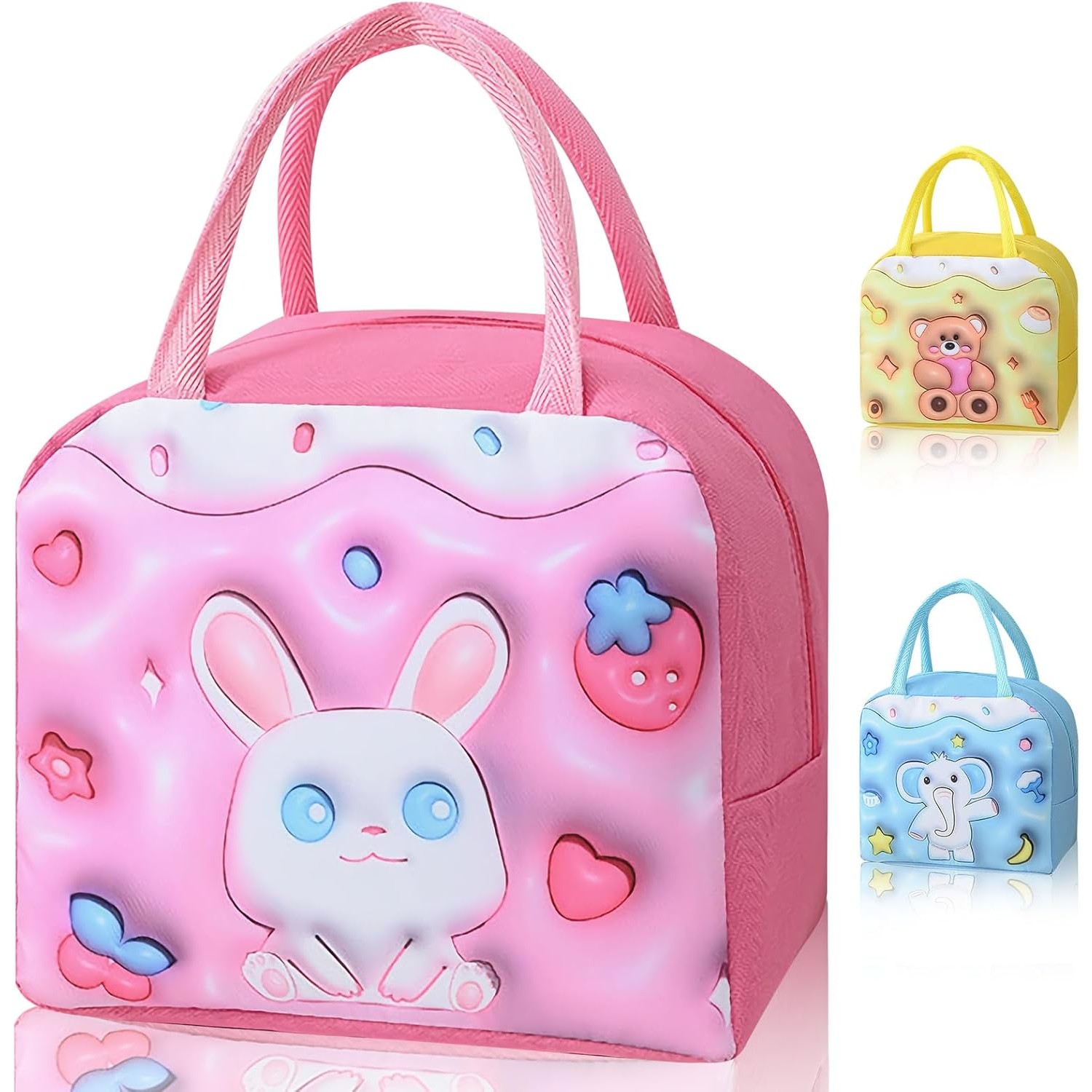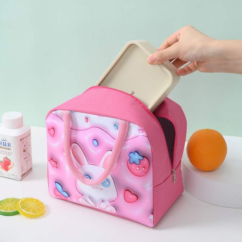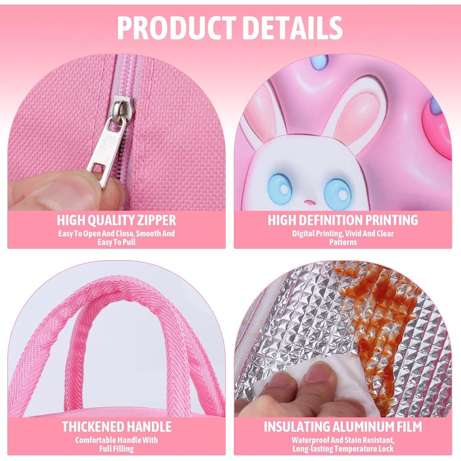 Geantă Frigorifică, Embo, cu Desene Animate 3D, Portabilă pentru Copii, de Prânz, din Pânză Oxford, 23x13x19 cm, Model Iepuras, Roz