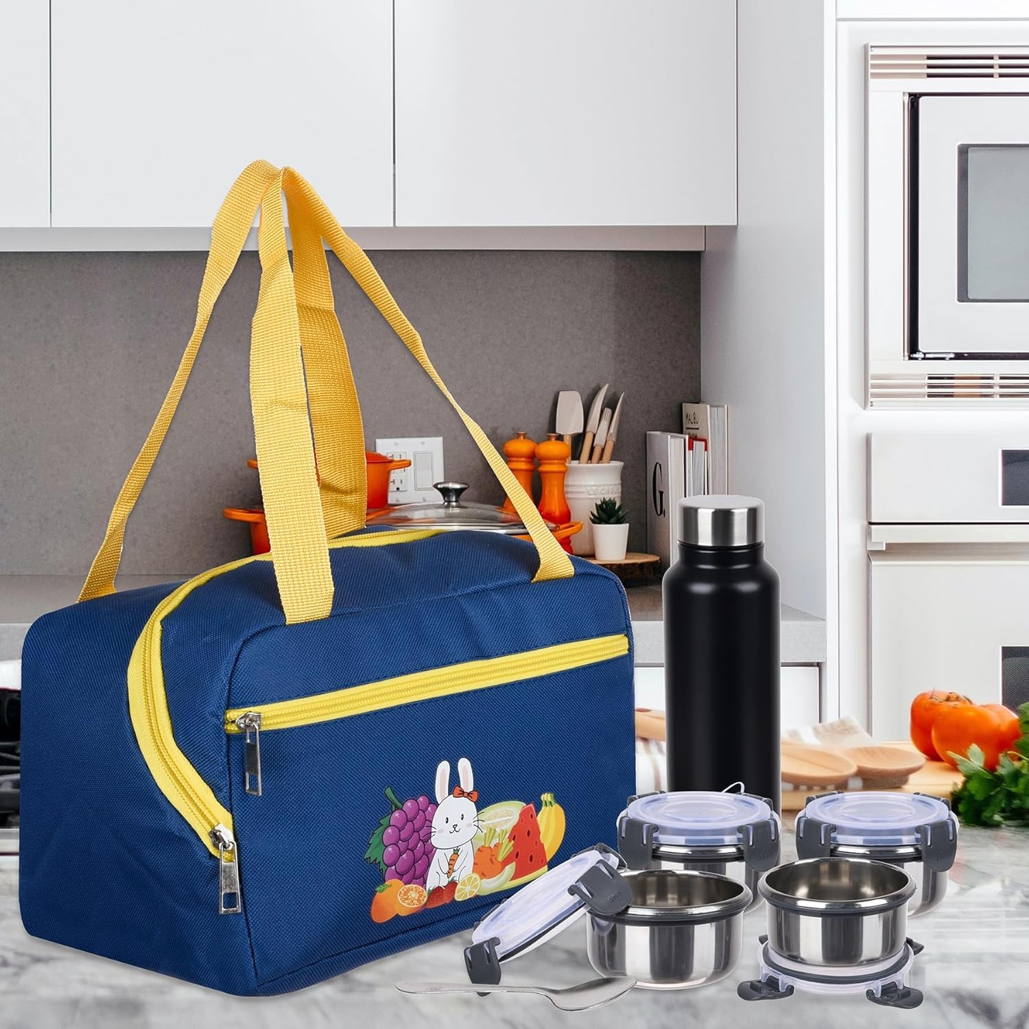 Geantă Termo-Izolantă Embo, cu Compartimente pentru Telefon și Tacâmuri, 30 x 21 x 20 cm, Design Iepuraș, Albastru