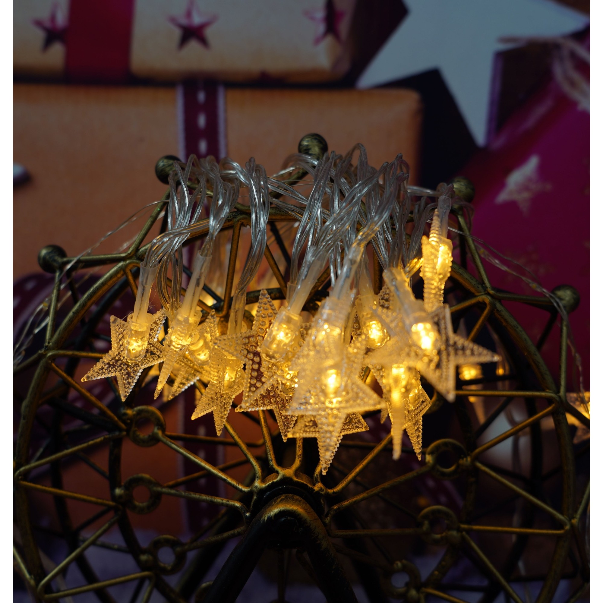 Instalatie Craciun, 3 M,20 de LED-uri, alb-cald, model cu stelute, liniara, cu baterie, interior/exterior, Embo