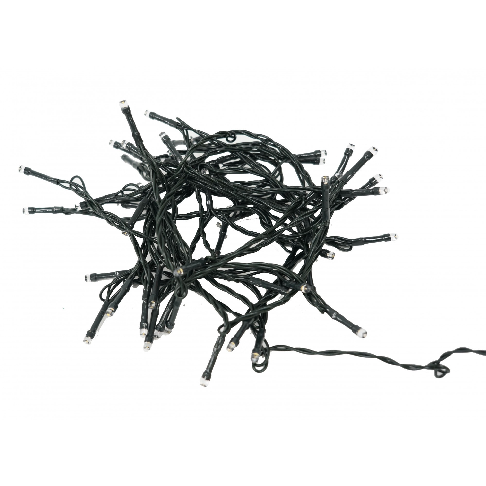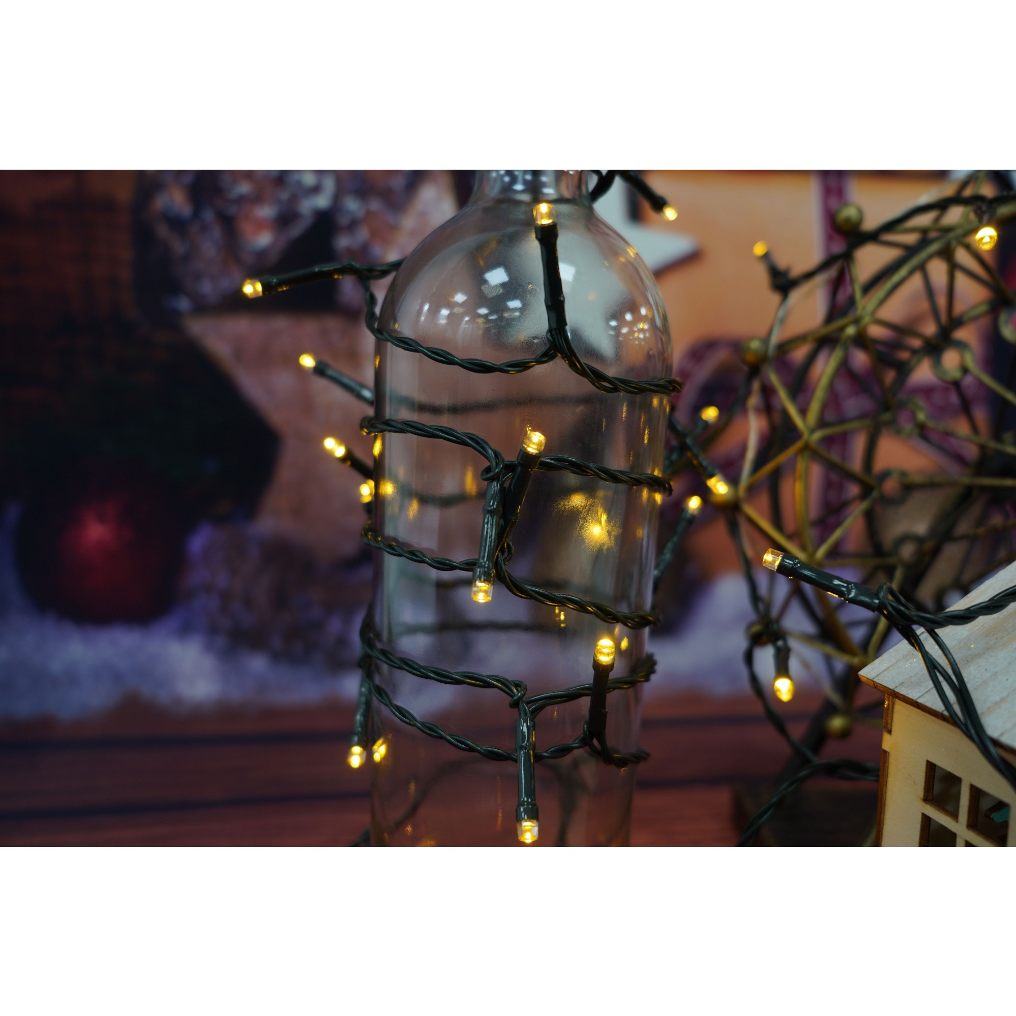 Instalatie Craciun, 8 metri, 50 de LED-uri, alb cald, telecomanda 8 functii, cu energie solara, fir negru, liniar, interior/exterior, Embo