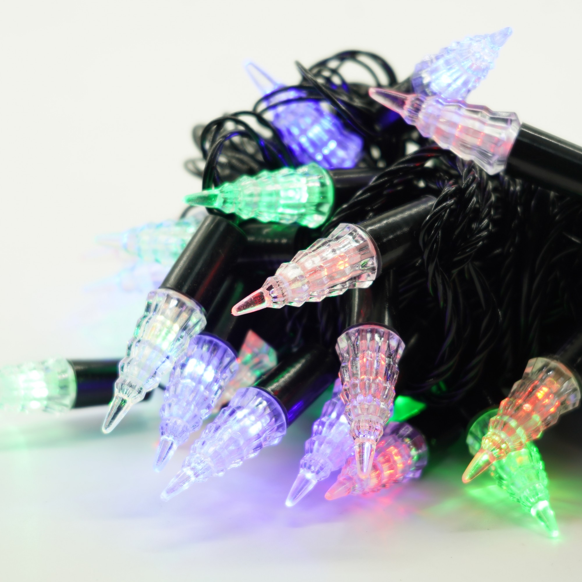 Instalatie de Craciun Liniara RGRB Yoto, 10 m, din care 1 m Prelungitor 220V, 40 LED, Model Brazi, Utilizare Interior/Exterior, Interconectabila, Fir Negru, multicolor
