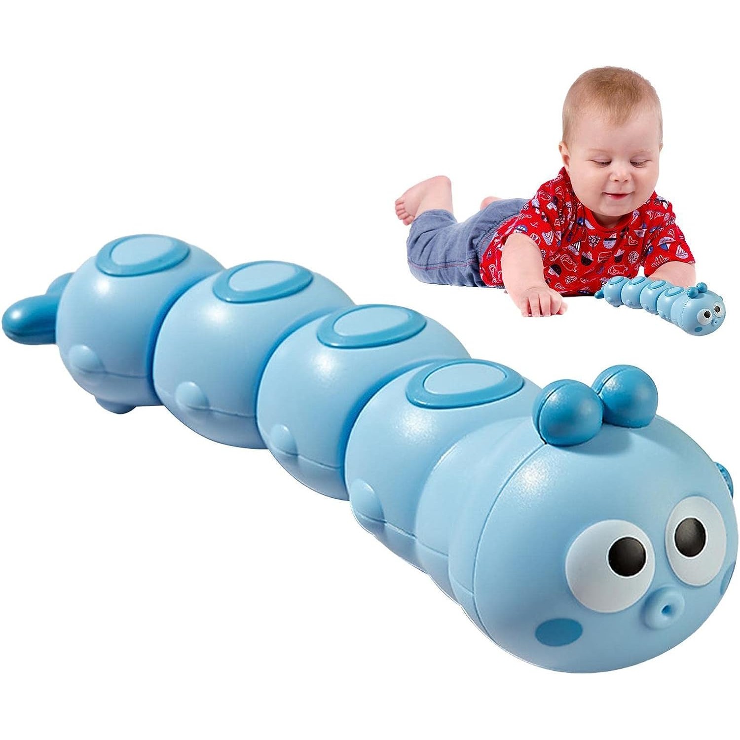 Jucarie mecanica pentru copii Embo, omida haioasa, material ABS, cu cheita, distractiva, se taraste, se misca, 15 x 4 cm, albastru