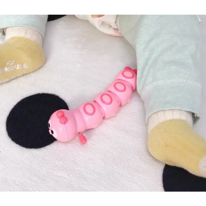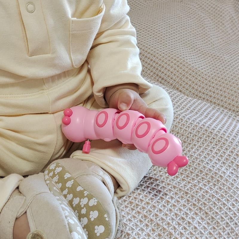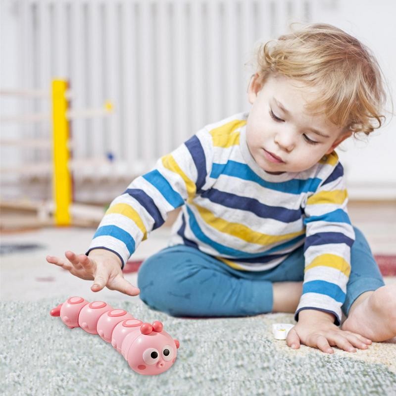 Jucarie mecanica pentru copii Embo, omida haioasa, material ABS, cu cheita, distractiva, se taraste, se misca, 15 x 4 cm, roz