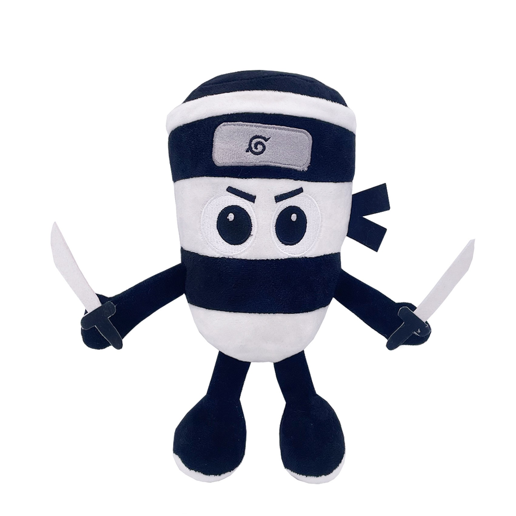 Jucarie Moale de Plus Italian Brainrot, Embo, cu Agatatoare, Model Ninja Spadellini Silenzioso, Jucarie Moale pentru Copii, 25 x 24 cm, Albastru Alb