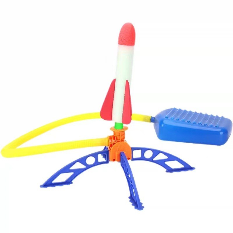 Jucarie distractiva de lansat rachete din burete cu ajutorului unei pedale pneumatice.