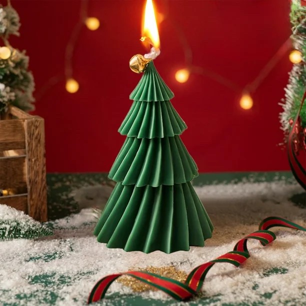 Lumanare de Craciun Parfumata, Embo, Lumanare Rotativa cu Aromaterapie, Model Brad de Craciun forma Lunga, din Ceara de Soia, 11 x 8 x 8 cm, Verde