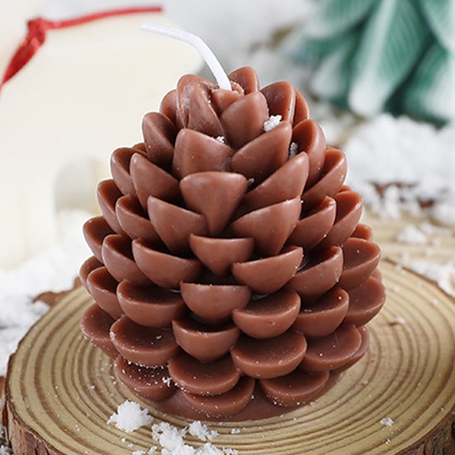 Lumanare Parfumata de Craciun, Embo, Model Con de Pin, din Ceara de Soia, Cadou Creativ Handmade de Craciun, 7 x 6.5 x 6.5 cm, Maro