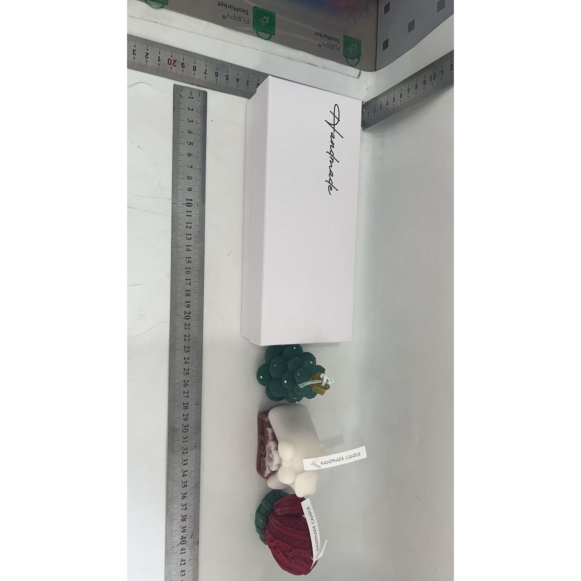 Lumanari Parfumate de Craciun, Embo, GIFT BOX din 3 Lumanari din Ceara de Soia, Model B Brad, Manusa, Casuta, 22.5 x 9.5 x 5 cm, Multicolor