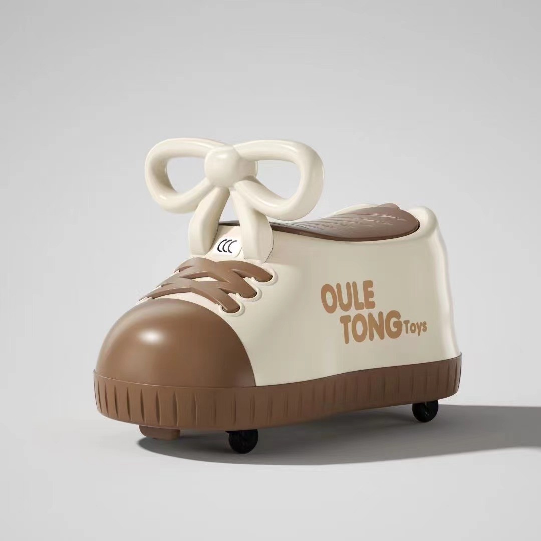 Masina pentru Copii, Embo, Model Pantof, 4 Roti, 1-6 ani, Cutie de Depozitare, din ABS, 48 x 27 x 34 cm, Maro