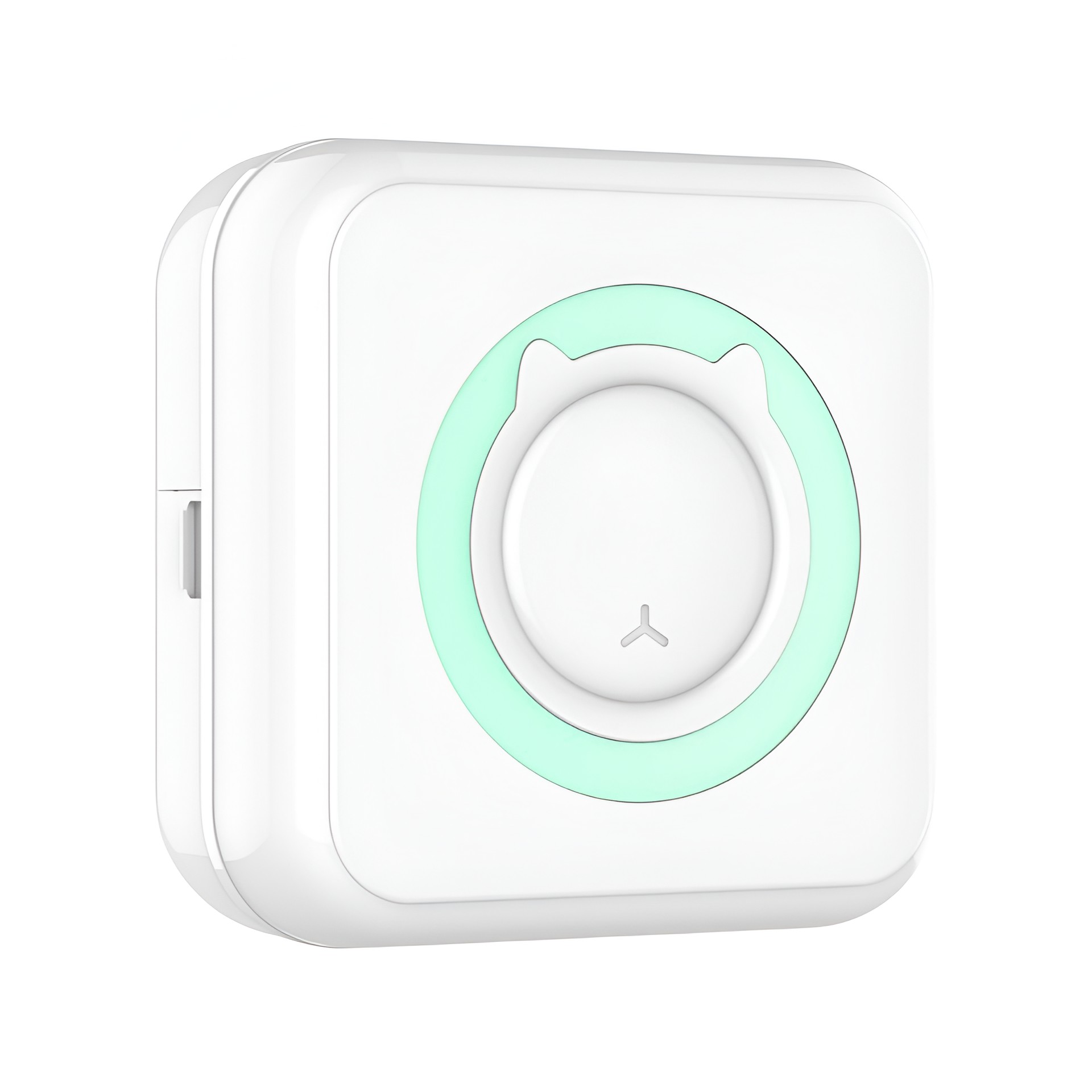 Mini Imprimanta Foto Portabila, Embo, 5 Role de Hartie Termica, 5 Role Autocolante, 3 Role Colorate, Pixuri, Incarcare USB, Model Pisica, Alb Verde