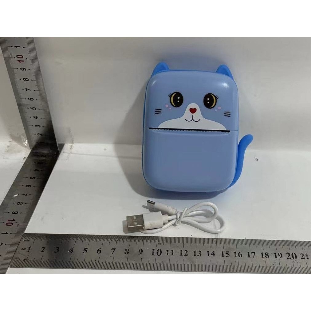 Mini Imprimanta Foto Portabila, Embo, Incarcare USB, Bluetooth, Model Pisicuta, Print Alb-Negru, Albastru