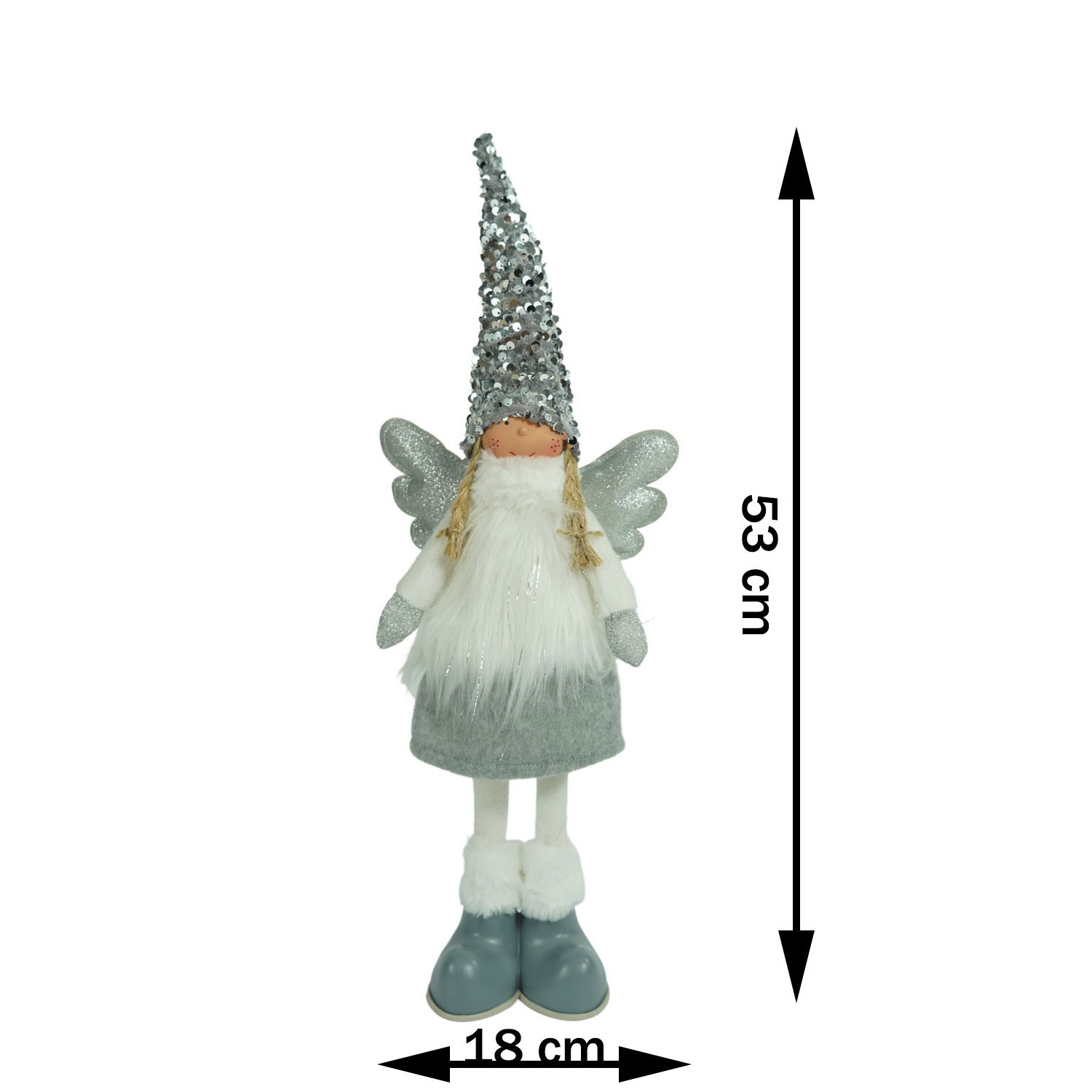Ornament de Craciun ingeras, Embo, alb/gri, textil, 58 cm
