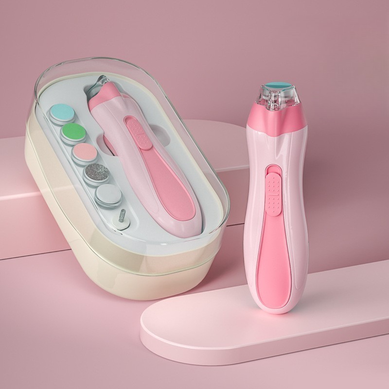 Pila Electrica, Embo, pentru Copii si Bebelusi, din ABS, 6 Accesorii, cu Lumina LED, 9.5 x 6 x 17 cm, Roz
