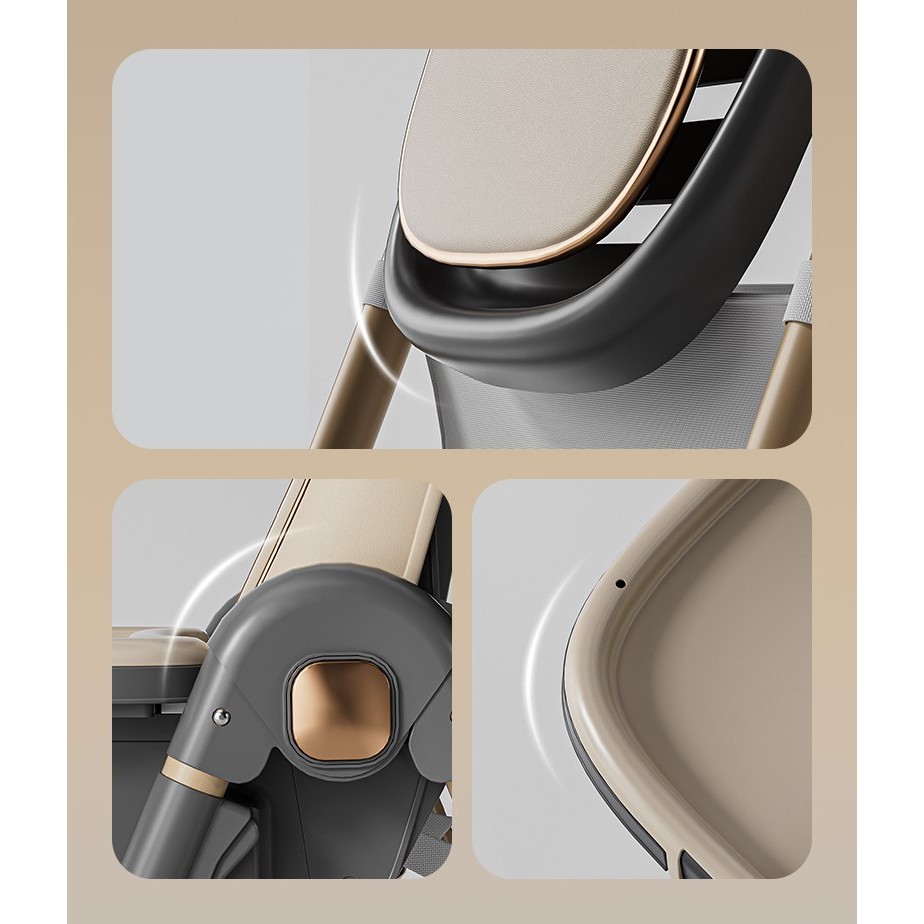 - Compartimentul de depozitare si cele două farfurii sunt detașabile și ușor de curățat: Scaunul vine cu o tavă dublă detașabilă, cu mai multe niveluri, realizată din material alimentar. O tavă canelată în partea de sus pentru sticle sau tacâmuri și o tavă în partea de jos pentru jucării. În coșul de depozitare puteți plasa obiectele ale bebelușului. Tava și coșul de depozitare sunt detașabile și ușor de curățat.