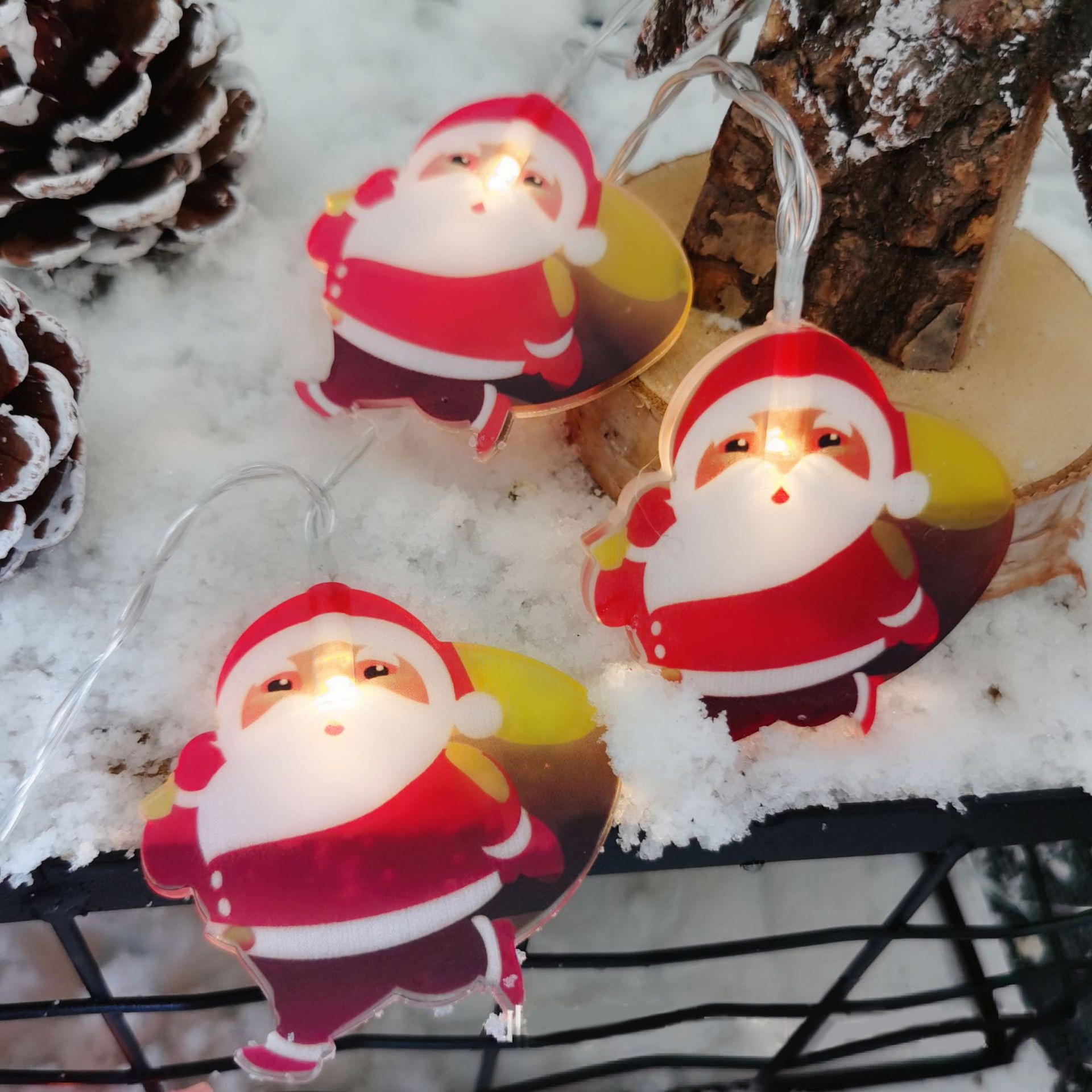 Set 10 Ornamente pentru Instalatie, Embo, Atasare la Instalatia de Craciun, Design Festiv, Protectie Becuri Instalatie, Rezistente la Zapada, Interior/ Exterior, Model Mos Craciun