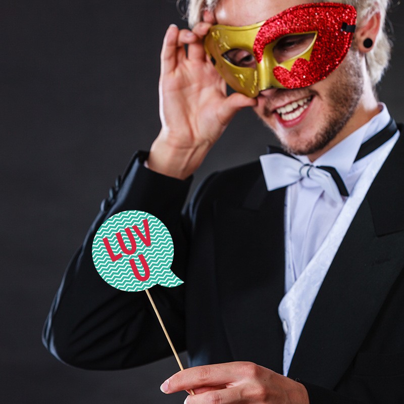 Setul de 12 accesorii pentru poze Embo este perfect pentru a adăuga un plus de distracție și romantism oricărei petreceri cu tematica iubirii.
