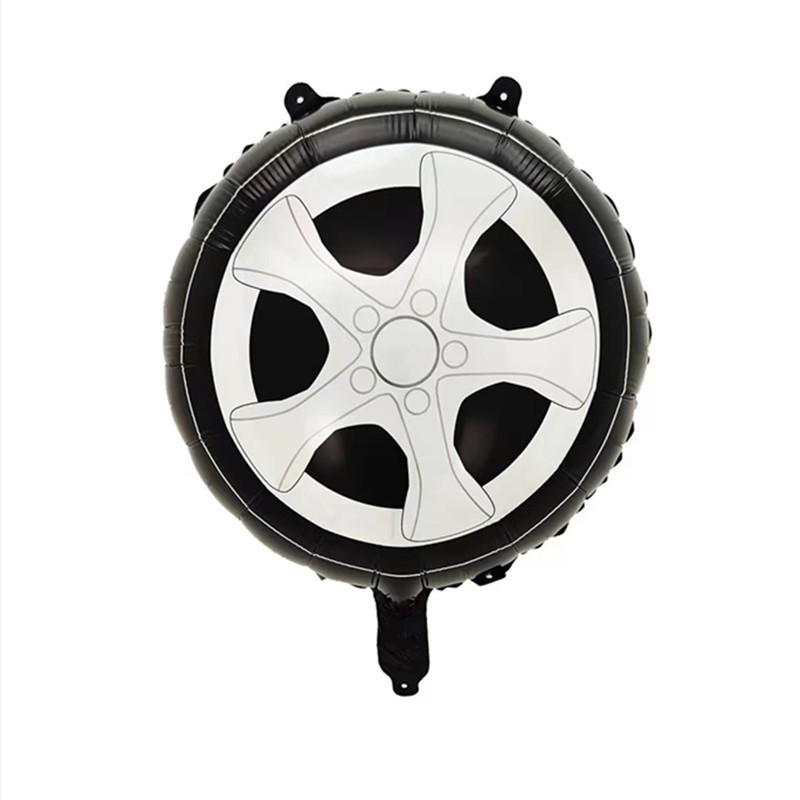 Set 2 Baloane din Folie Metalizata, Embo, Figurine Roti, Model Masini, 75-80 cm cm, Ambalaj Individual, Pai Inclus, Umflare cu Aer sau Heliu, Negru