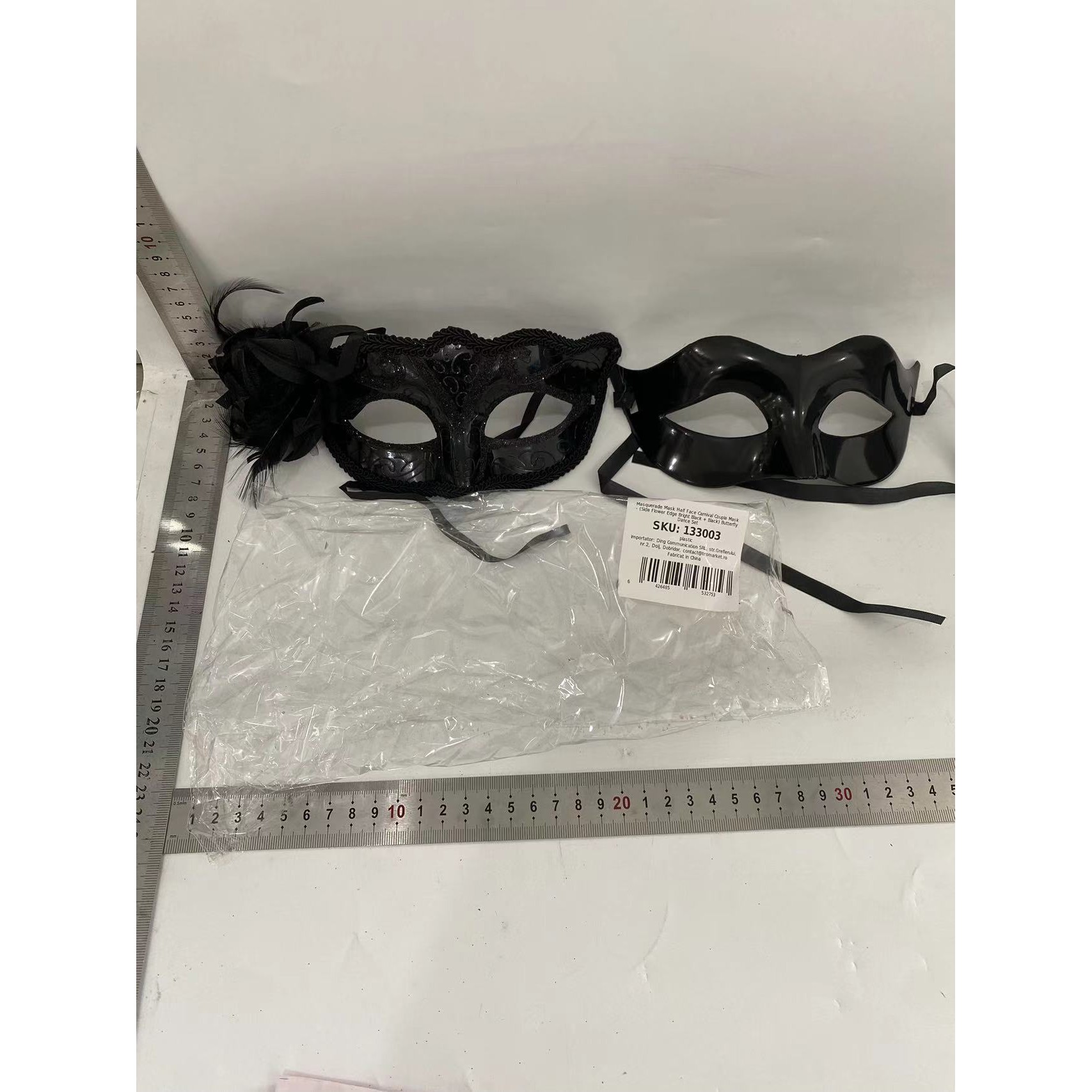 Set 2 Masti de Cuplu, Embo, pentru Carnaval, Bal Mascat, Marime Universala, Model Floare Laterala si Margele, Model Clasic, Negru Gri