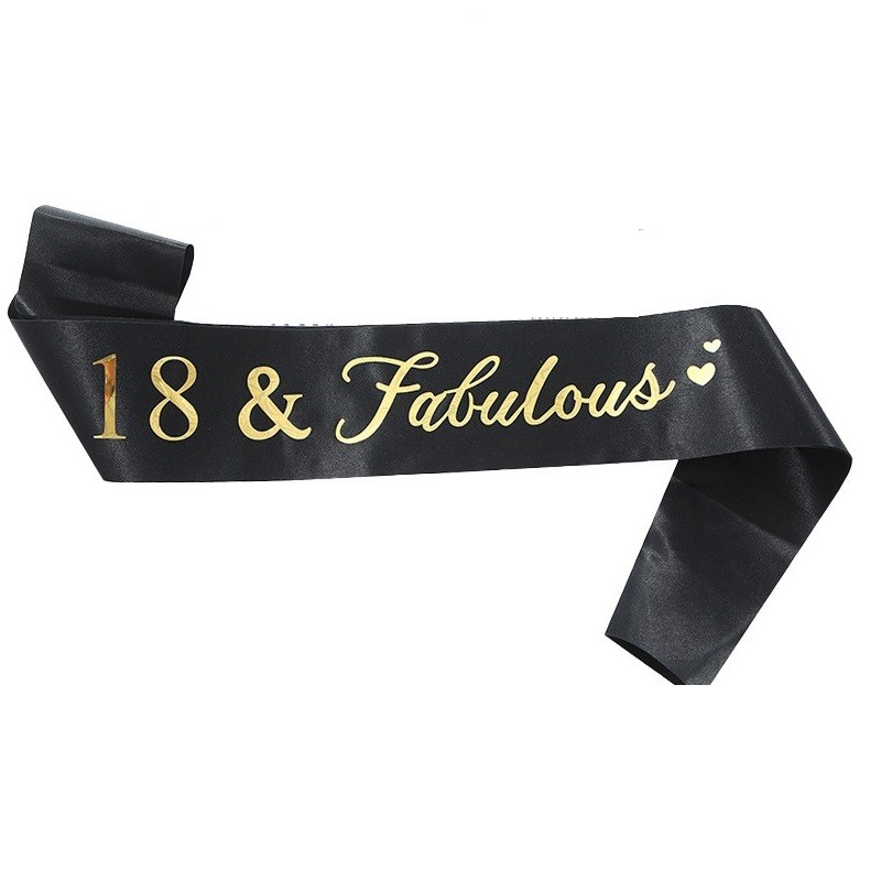 - Panglică inscripționată “18 & Fabulous”: Panglica este confecționată din material rezistent și elegant, potrivindu-se perfect cu tema de sărbătoare a majoratului. Inscripția este realizată cu litere aurii, adăugând un efect festiv.