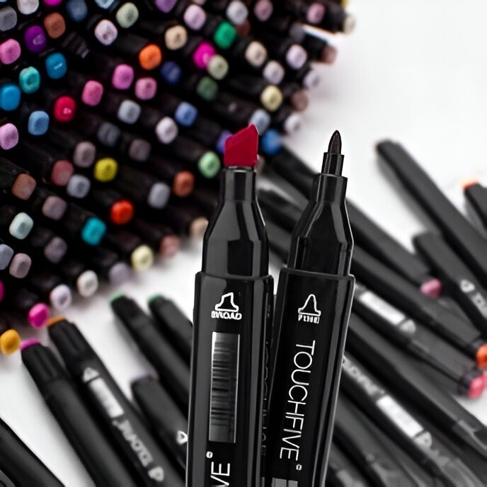 - Dublu vârf: Oferă flexibilitate și permite utilizarea markerelor pentru diverse stiluri de desen și scriere