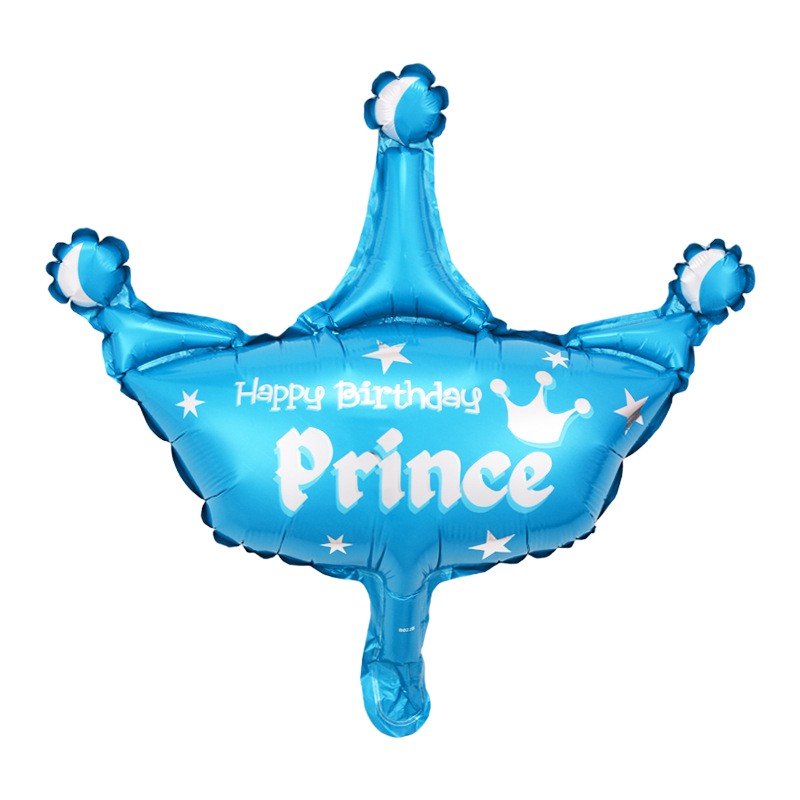 Set 3 Baloane din Folie Metalizata, Embo, Figurine Coroana si Stea, Model Aniversare, 40 cm, Ambalaj Individual, Pai Inclus, Umflare cu Aer sau Heliu, Albastru