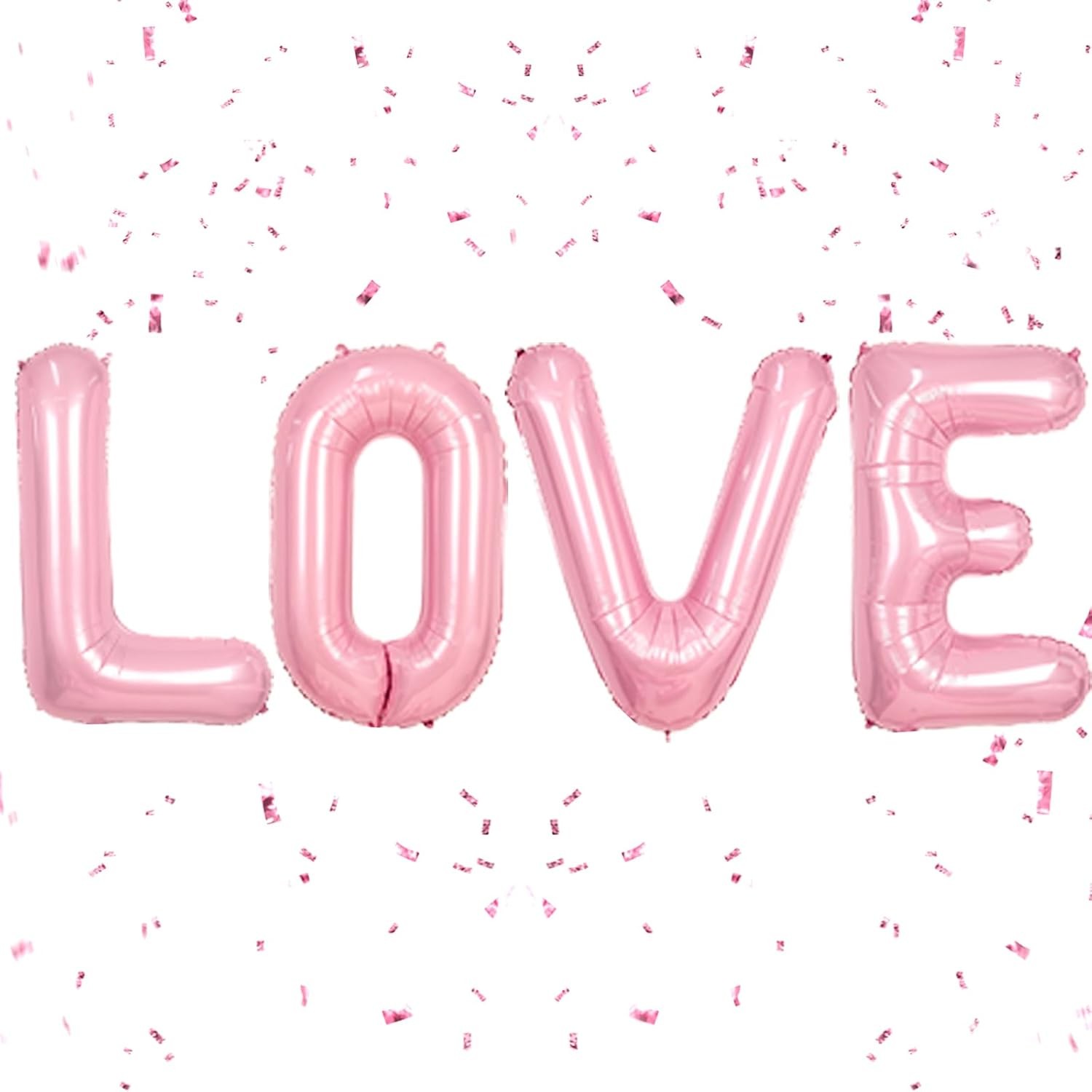 Set 4 Baloane din Folie Metalizata, Embo, Figurine Litere, Model Scris Love, Tema Iubire, 80 cm, Ambalaj Individual, Pai Inclus, Umflare cu Aer sau Heliu, Roz