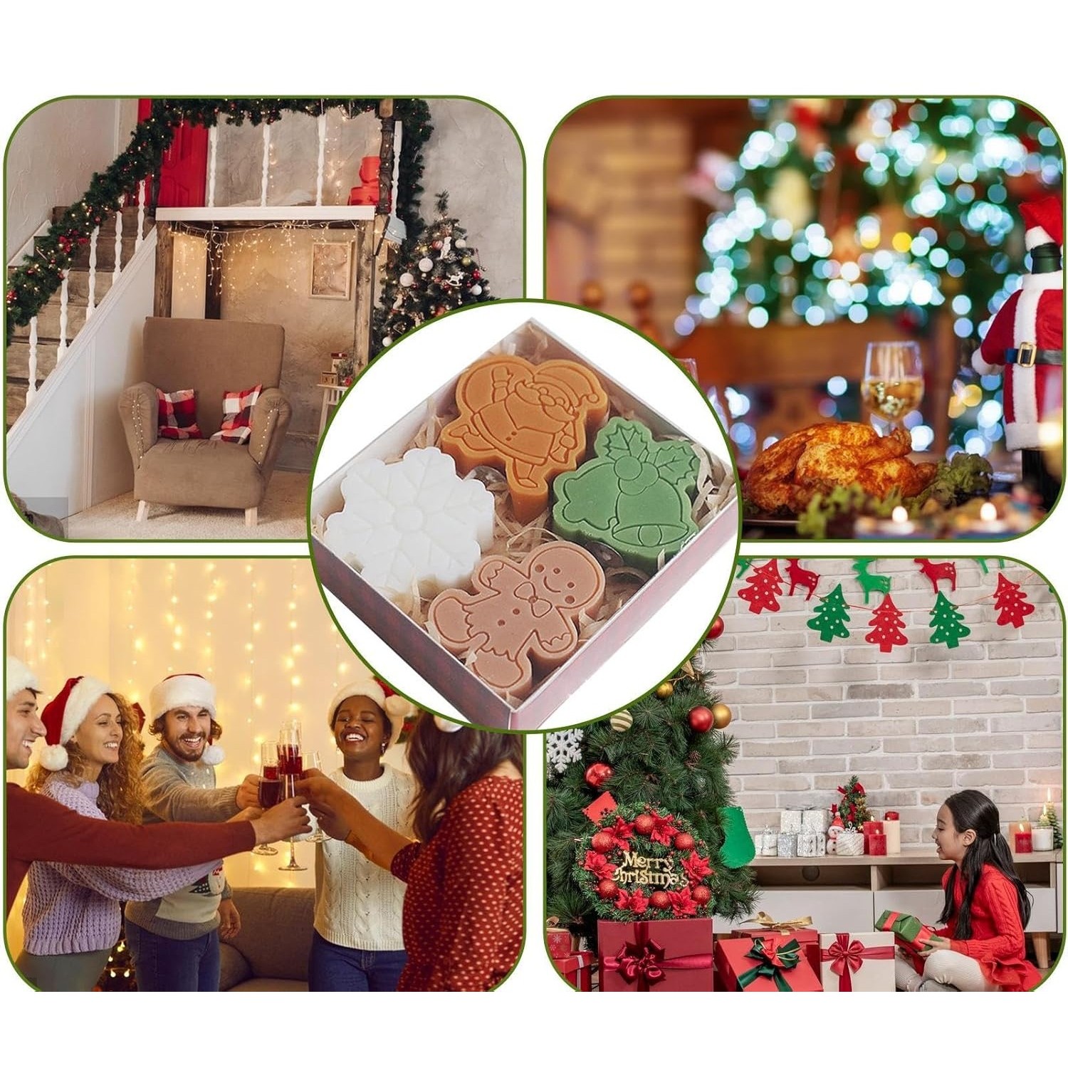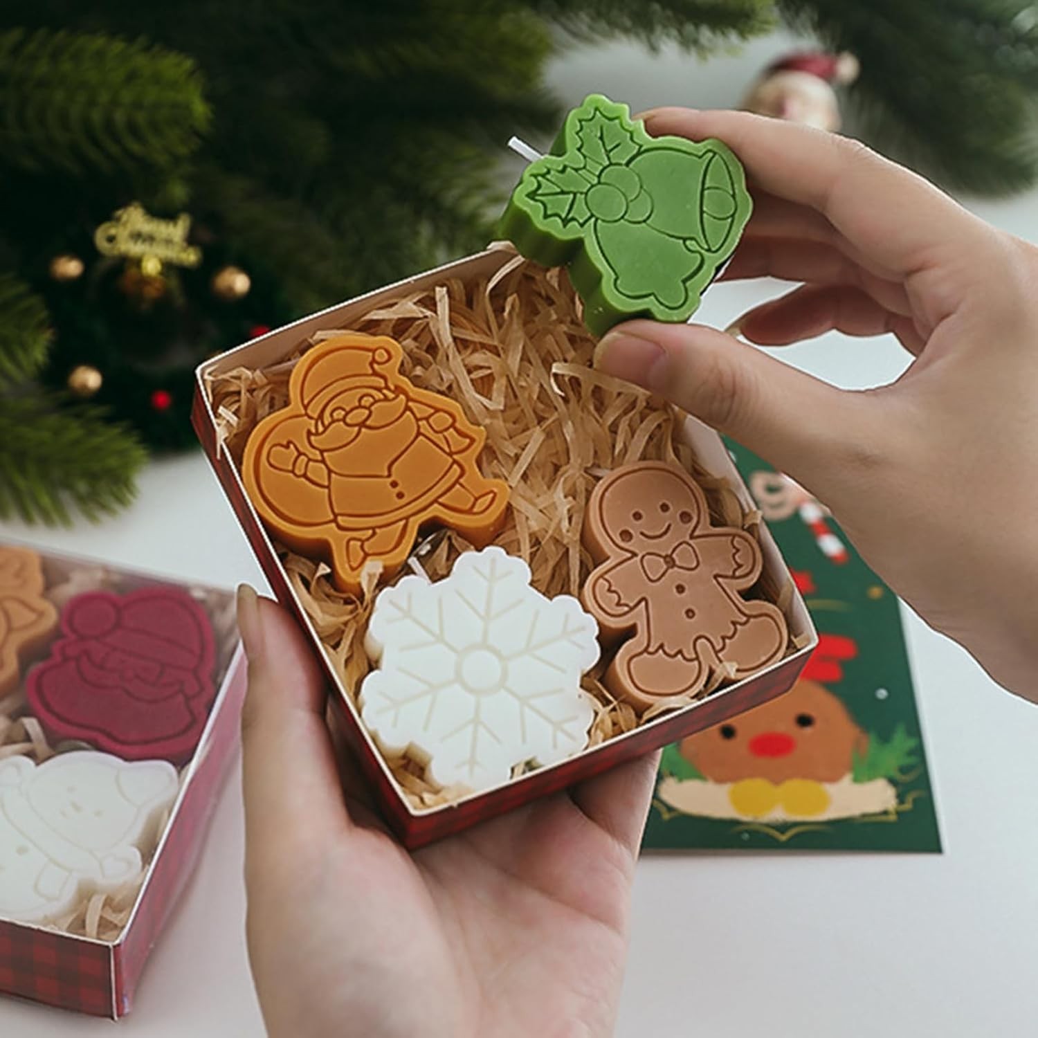 Set 4 Lumanari Parfumate, Embo, Tema Craciun, din Parafina, 10.2 x 9.1 x 2.7 cm, Multicolor