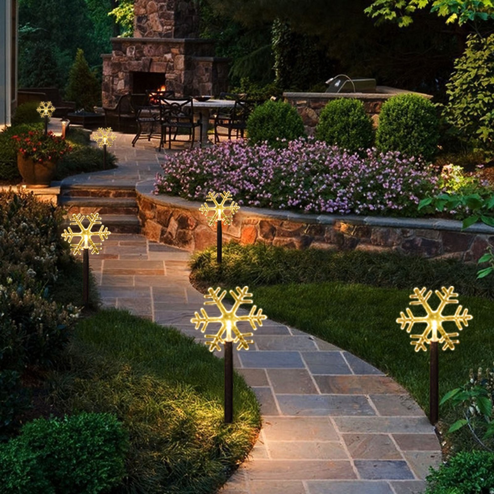 Set 5 Lampi LED cu baterii, de exterior Model Fulg de nea, pentru gradina, Embo, 35.5 cm, Alb Cald