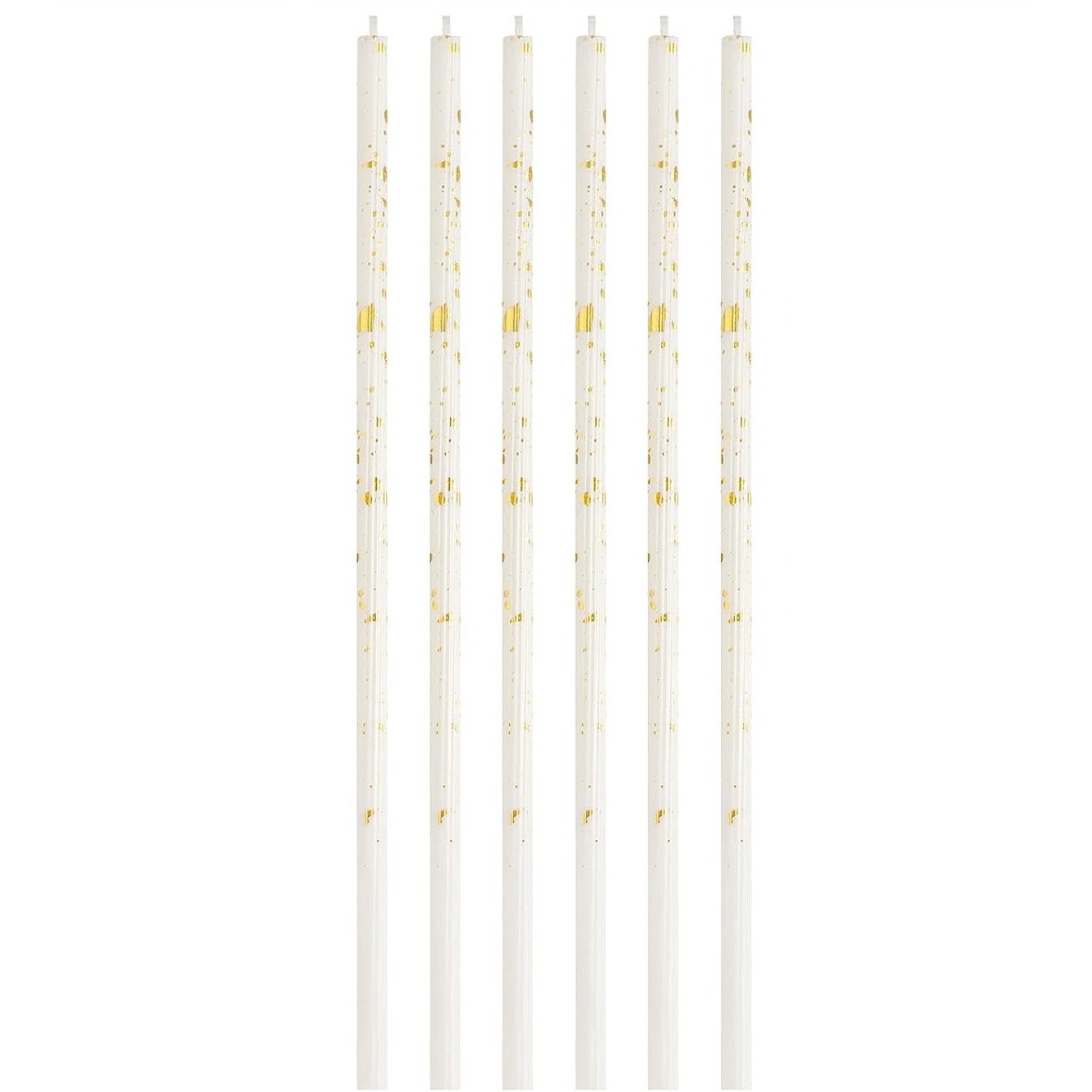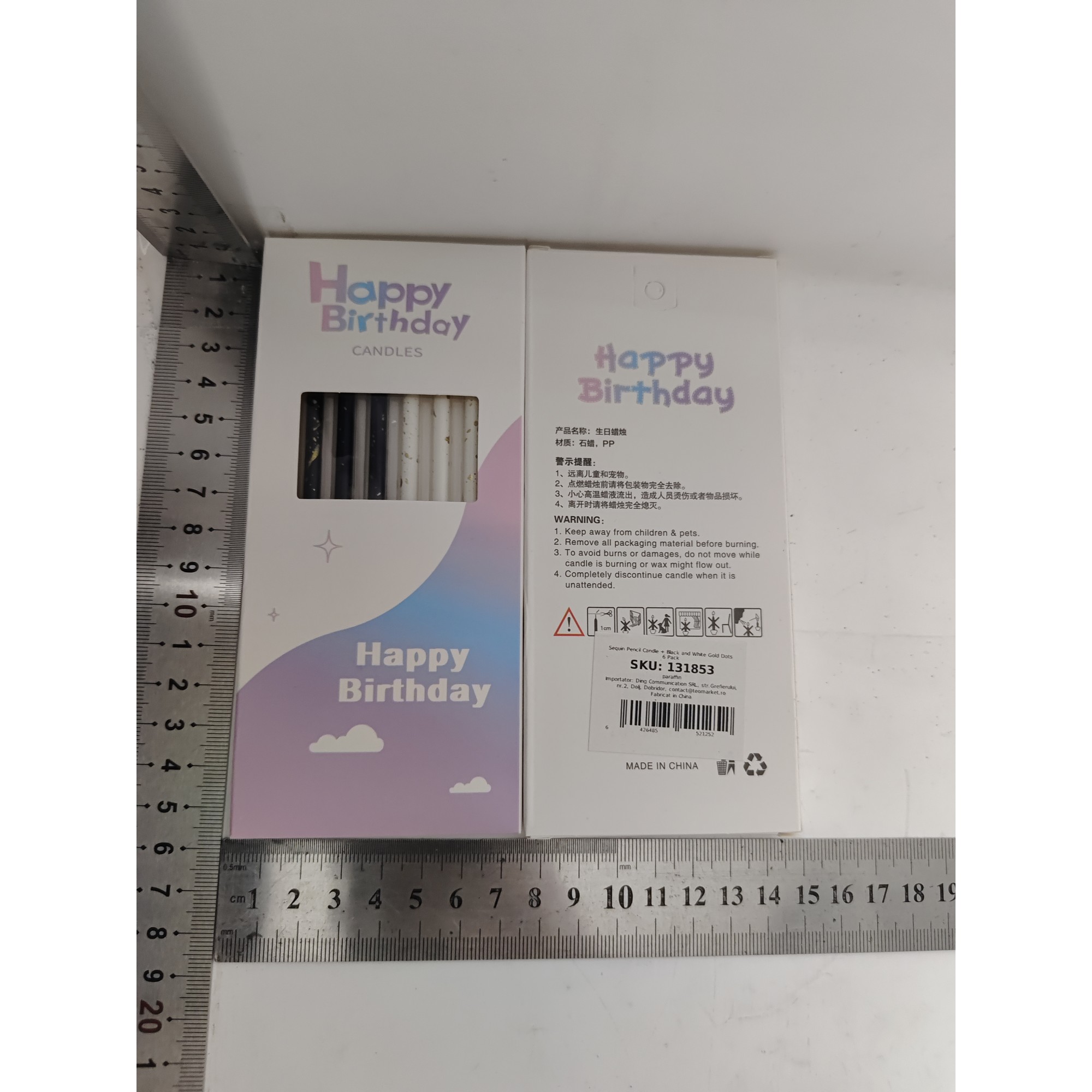 Set 6 Lumanari Lungi, Embo, din Parafina, 10 x 0.5 cm, Happy Birthday, Alb/Negru