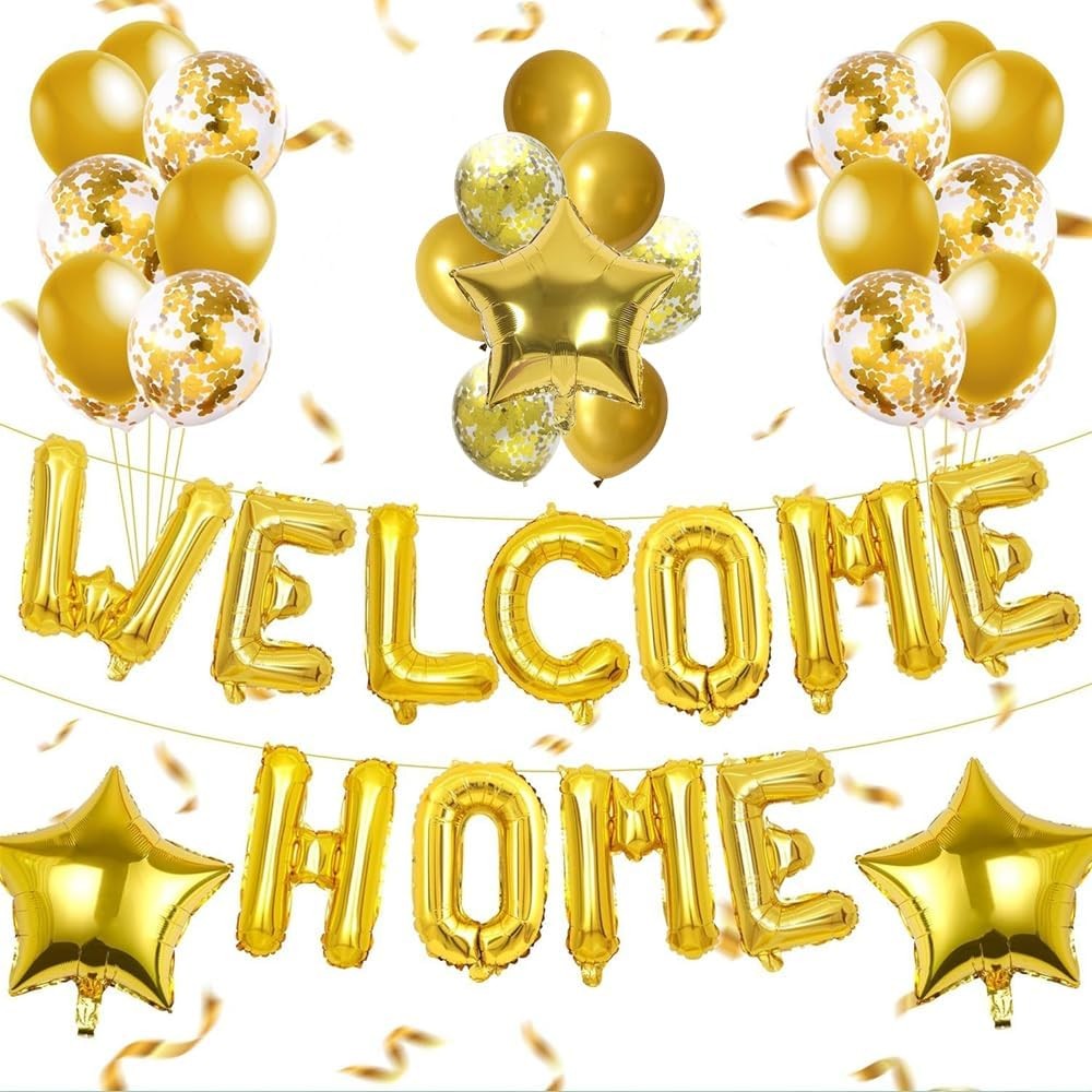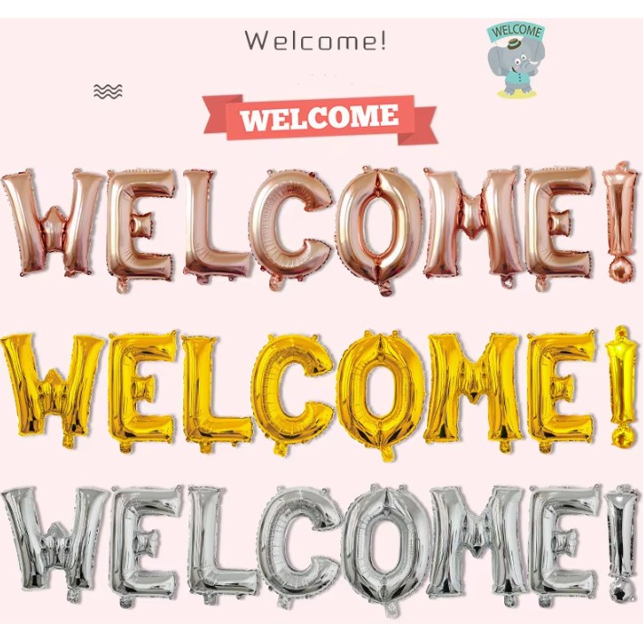 Set Baloane din Folie Metalizata, Embo, Model WELCOME!, Litere de 40 cm, Baloane Party, Ambalaj Individual, Pai Inclus, Umflare cu Aer sau Heliu, Auriu