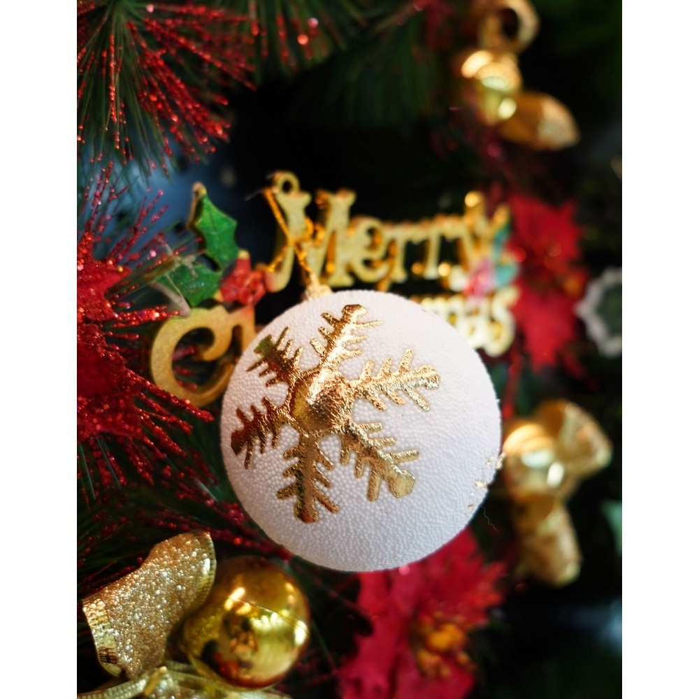 Acest set de 12 globuri de Crăciun în nuanțe elegante de alb, roșu și auriu aduce un plus de rafinament și căldură oricărei decorări festive. Fiecare glob are o textură distinctă – de la luciu metalic intens, la suprafețe sclipitoare și aplicații aurii sub formă de fulgi – creând un efect vizual bogat și armonios. Setul este ideal pentru bradul de Crăciun, aranjamente de masă, ghirlande sau proiecte DIY, aducând echilibrul perfect între clasic și modern. Culorile se completează impecabil, oferind un decor festiv luminos, elegant și ușor de integrat în orice tematică de sărbători.