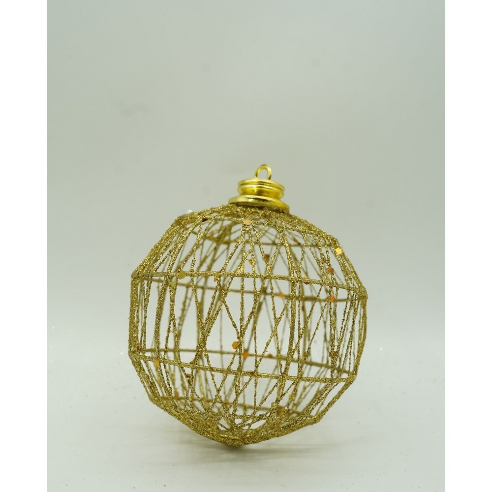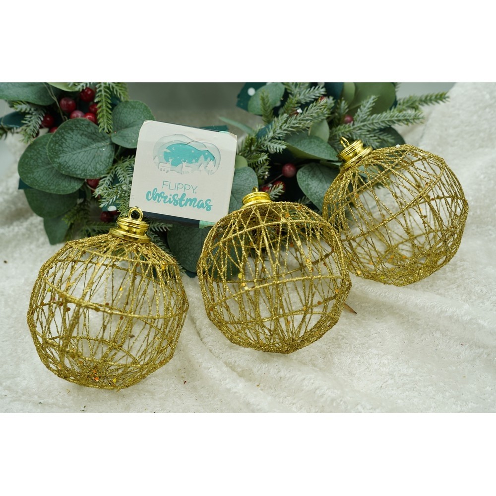 Set de 3 ornamente de brad, Embo, de tip Glob, Auriu, cu ø de 10 cm, din metal, cu finisaj sclipitor , cutie 10 cm adancime x 30 cm lungime x 10 cm inaltime